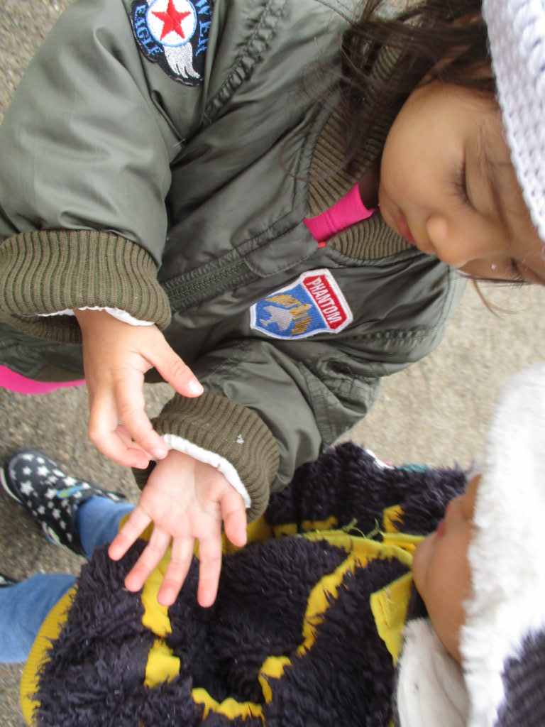 一つひとつの表情や言葉などの子どもたちの発信を見逃さず、言葉をそえたり共感したりしながら、一緒に冬を楽しんでいこうと思います。