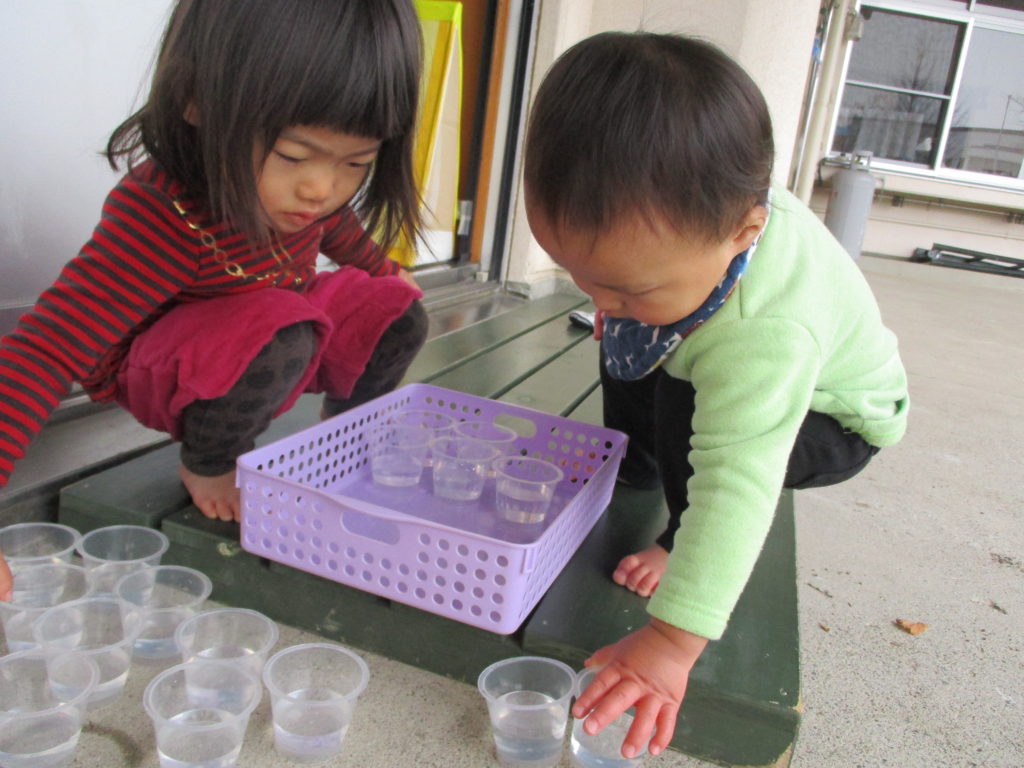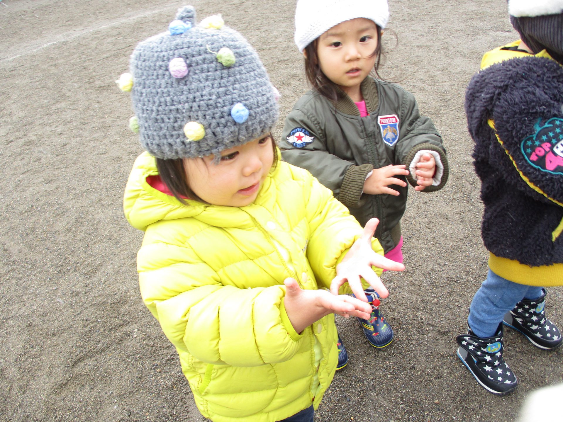 雪の冷たさ、手のひらで無くなってしまう不思議さ。氷が割れっちゃった!、、、興味を示して、見たり、自分の手で触ることで発見することもたくさんあります。冬の自然現象はこどもたちにとって魅力がたくさん詰まっていることでしょう。