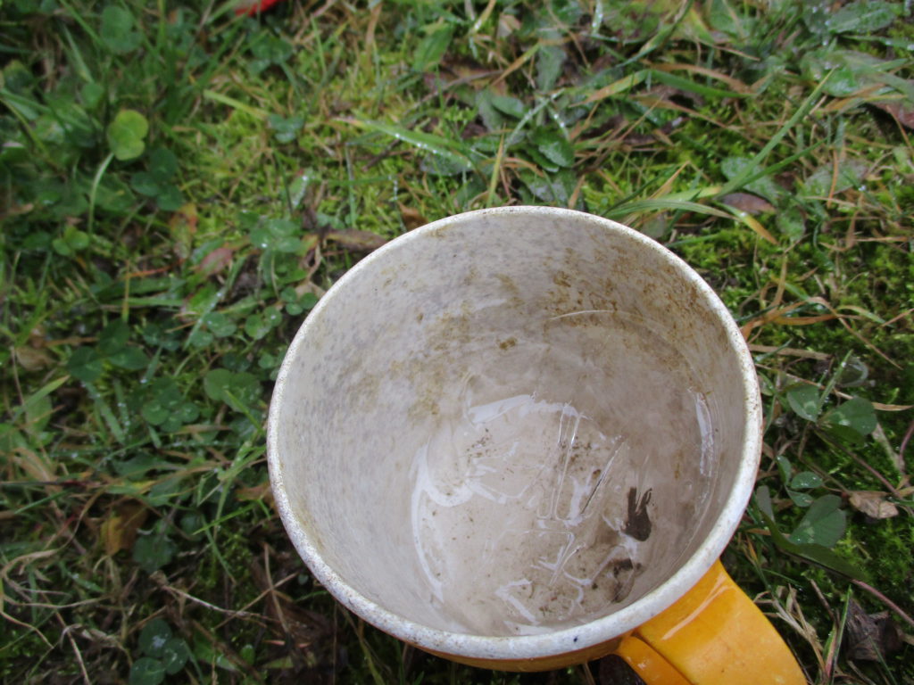 お部屋に帰ってきてから、カップに水を入れて外に置いてみることに。