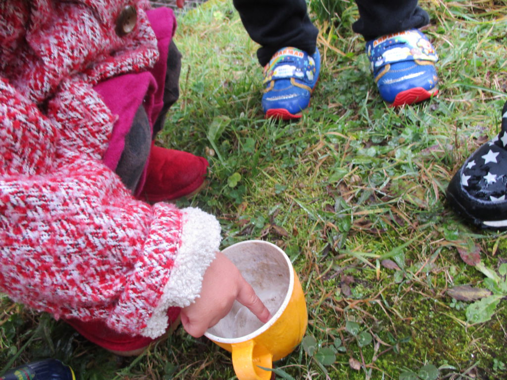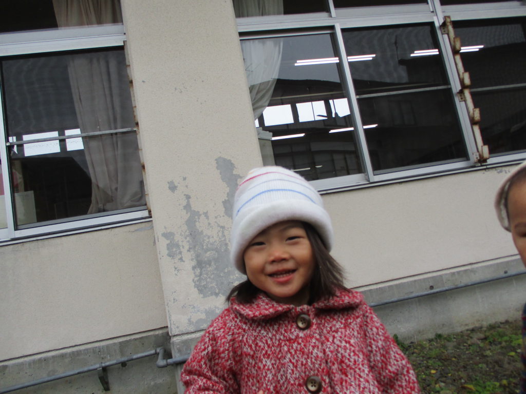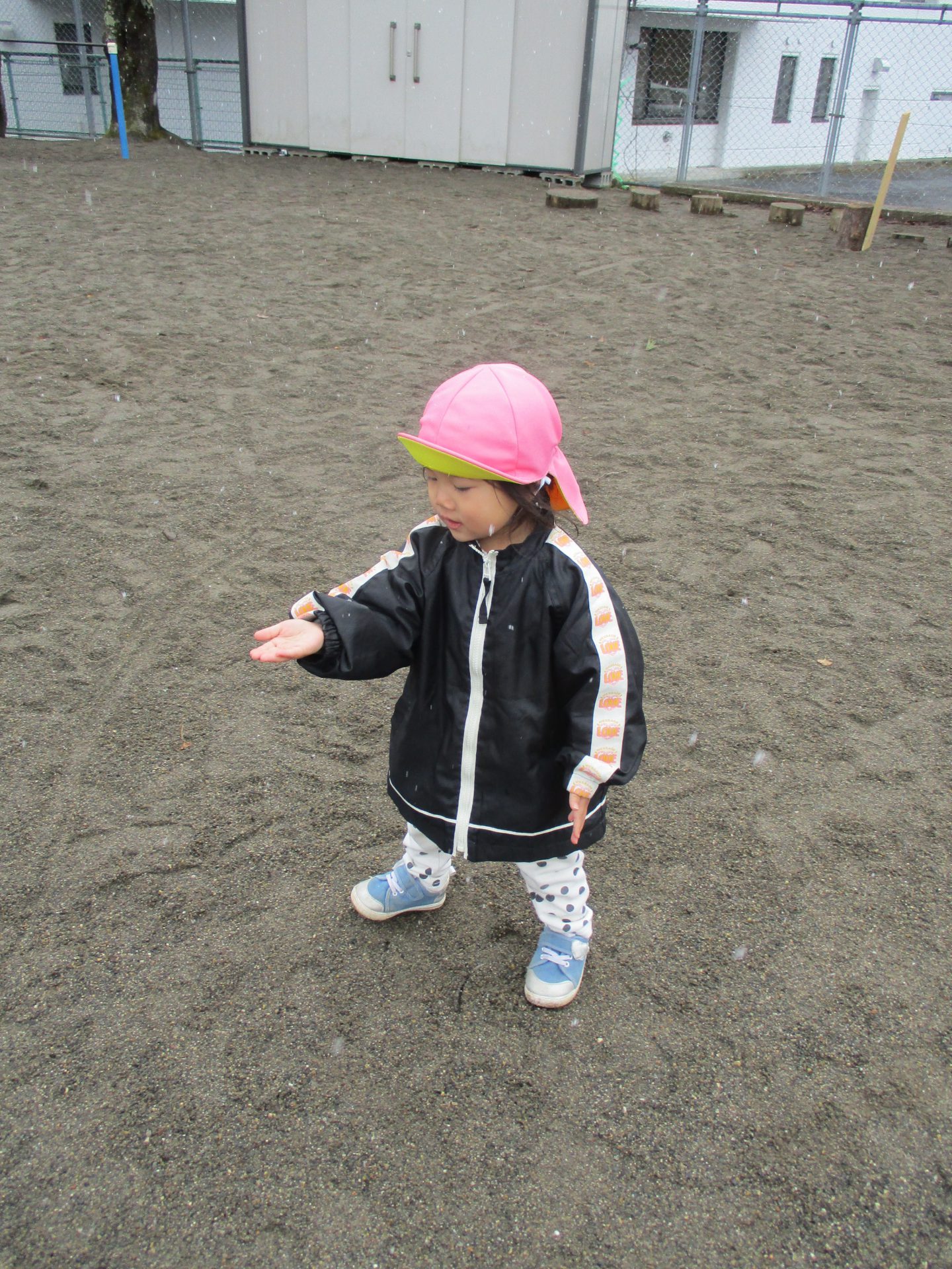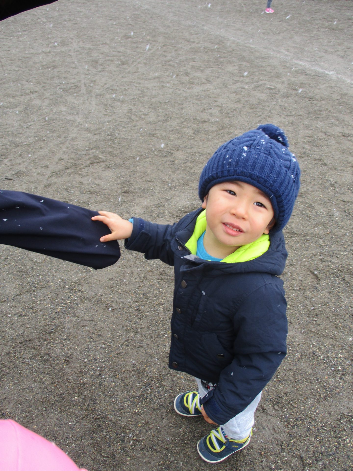 窓からは興味津々で見ていたのですが、不思議なことにいざ外に出てみるとちらちら降っている雪に気づかない様子のお友だち。