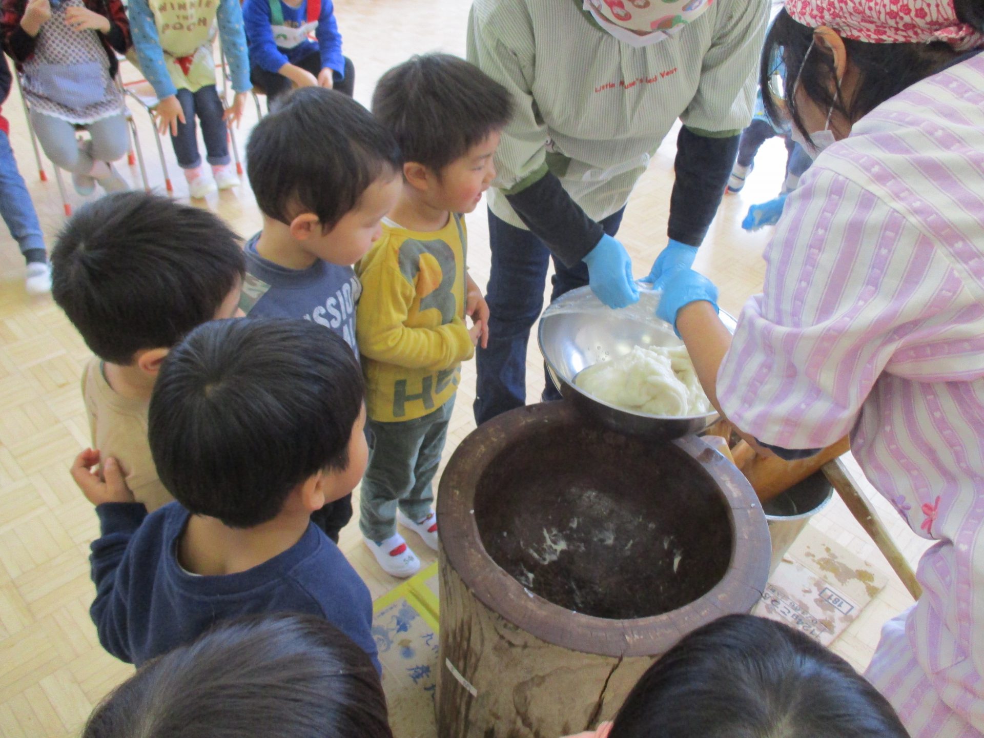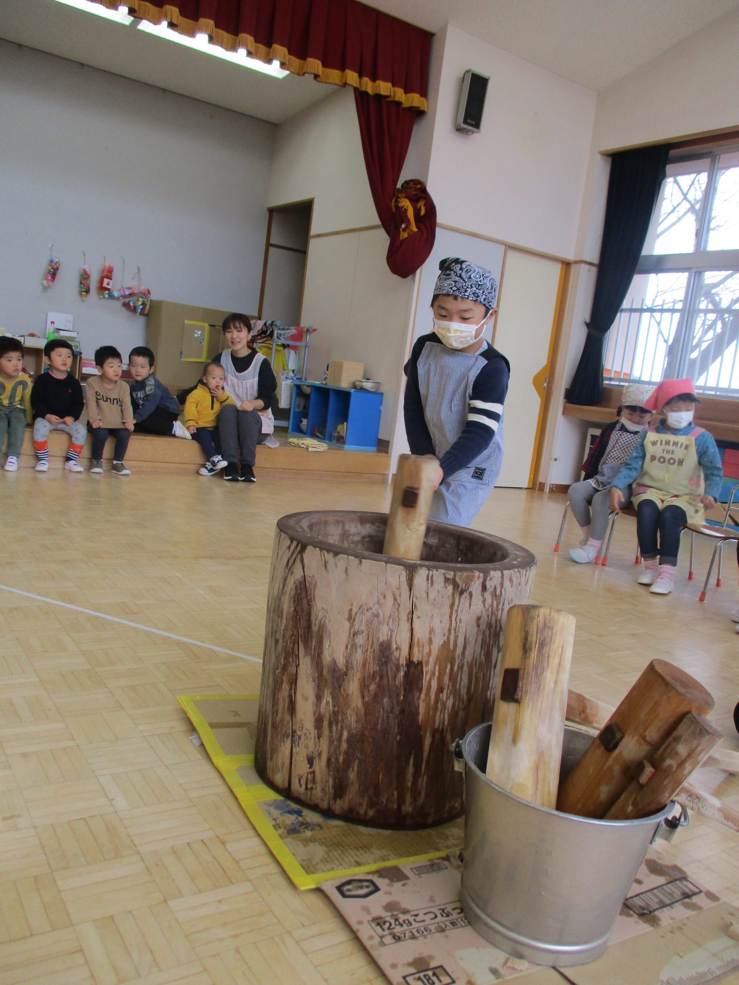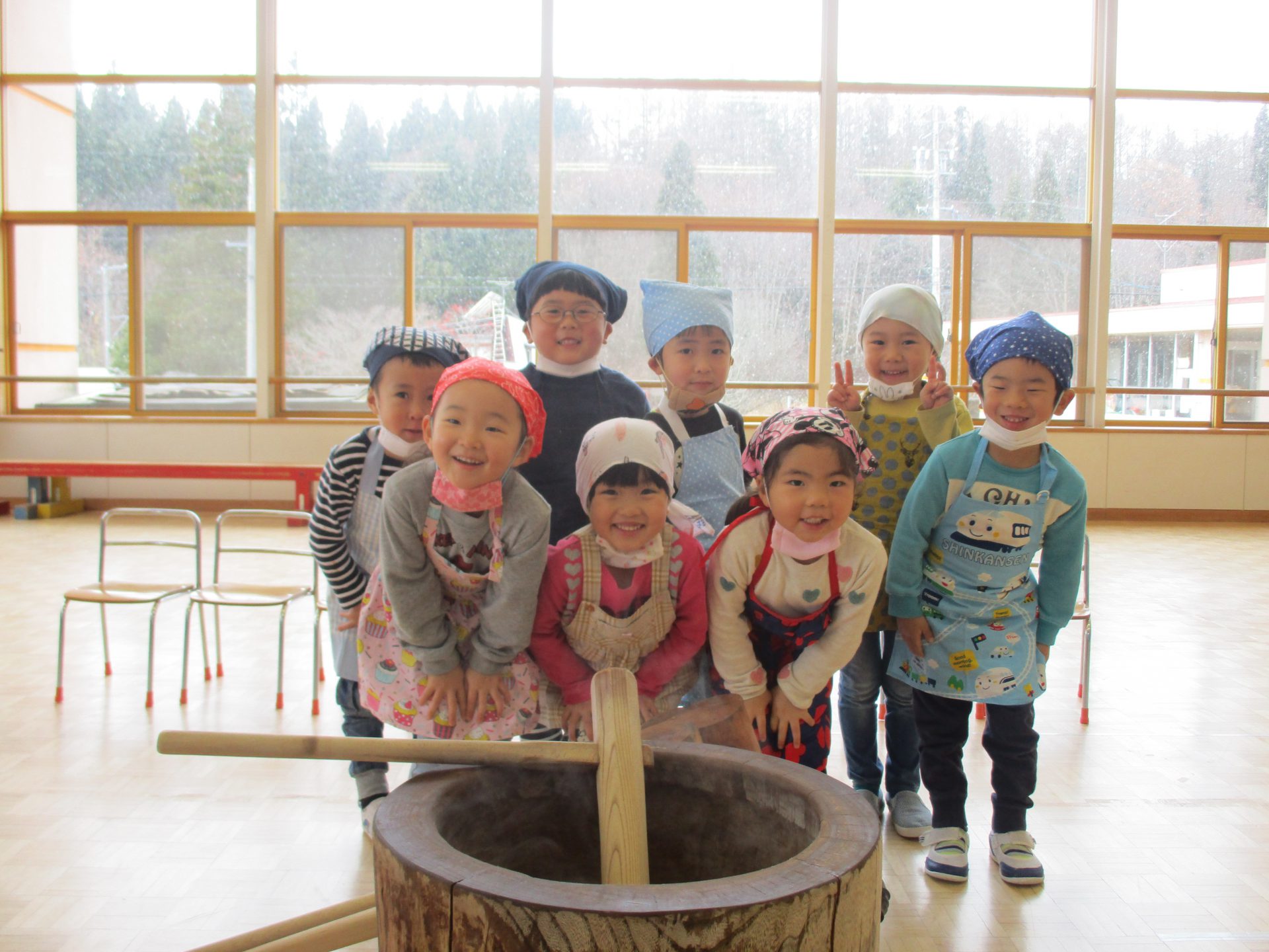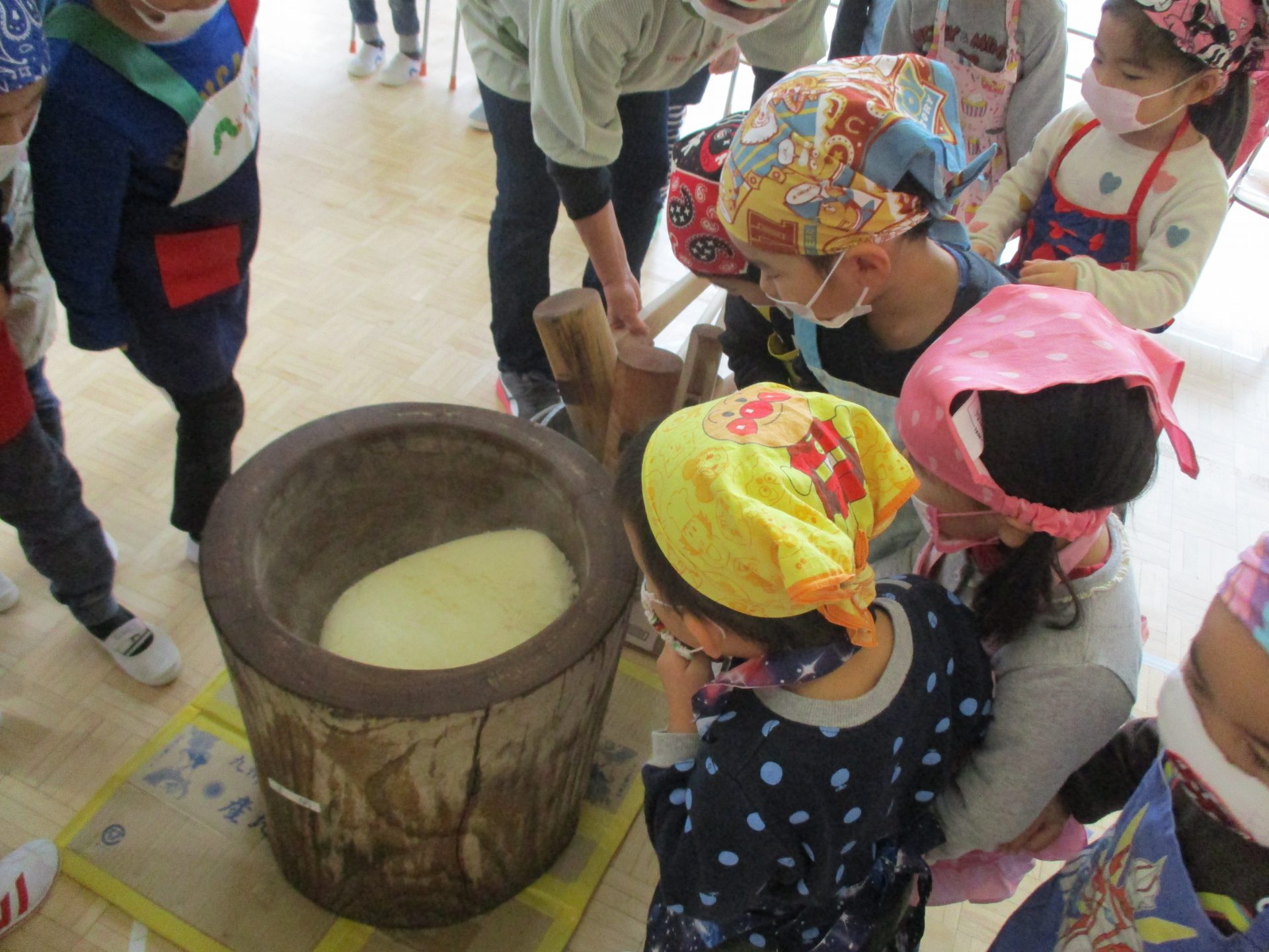 餅つき会を通して子どもたちは、餅ができるまでの過程に驚いたり、自分たちで作った餅を味わったり、そこで生まれた思いを友達と共有したり・・・と、たくさんの気づきや発見、喜びがありました。