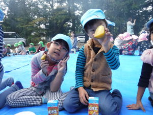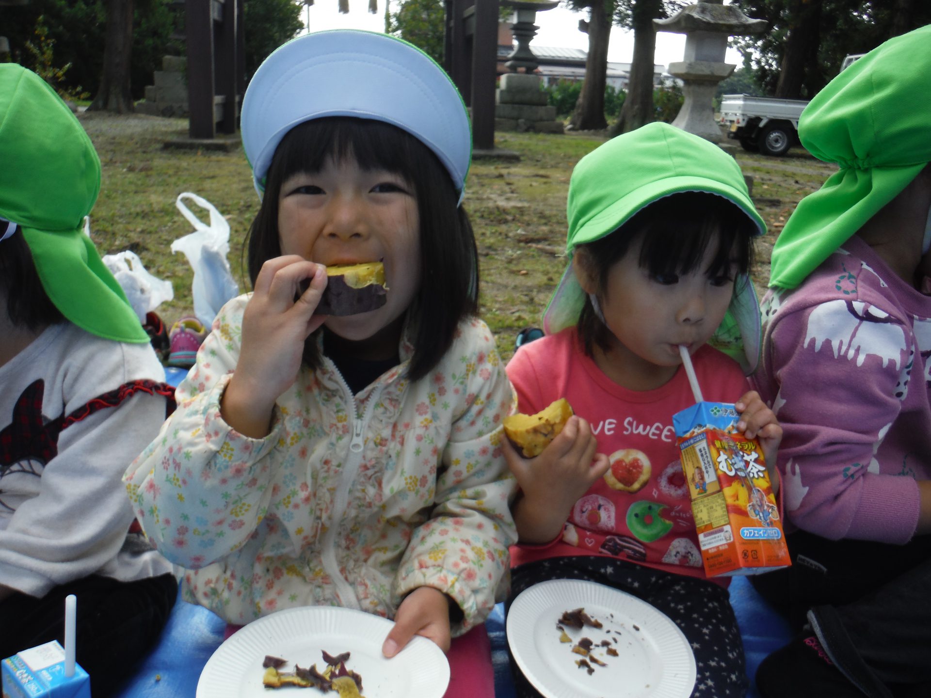 掘ったおいもを焼いてもらって「いただきまーす!!」