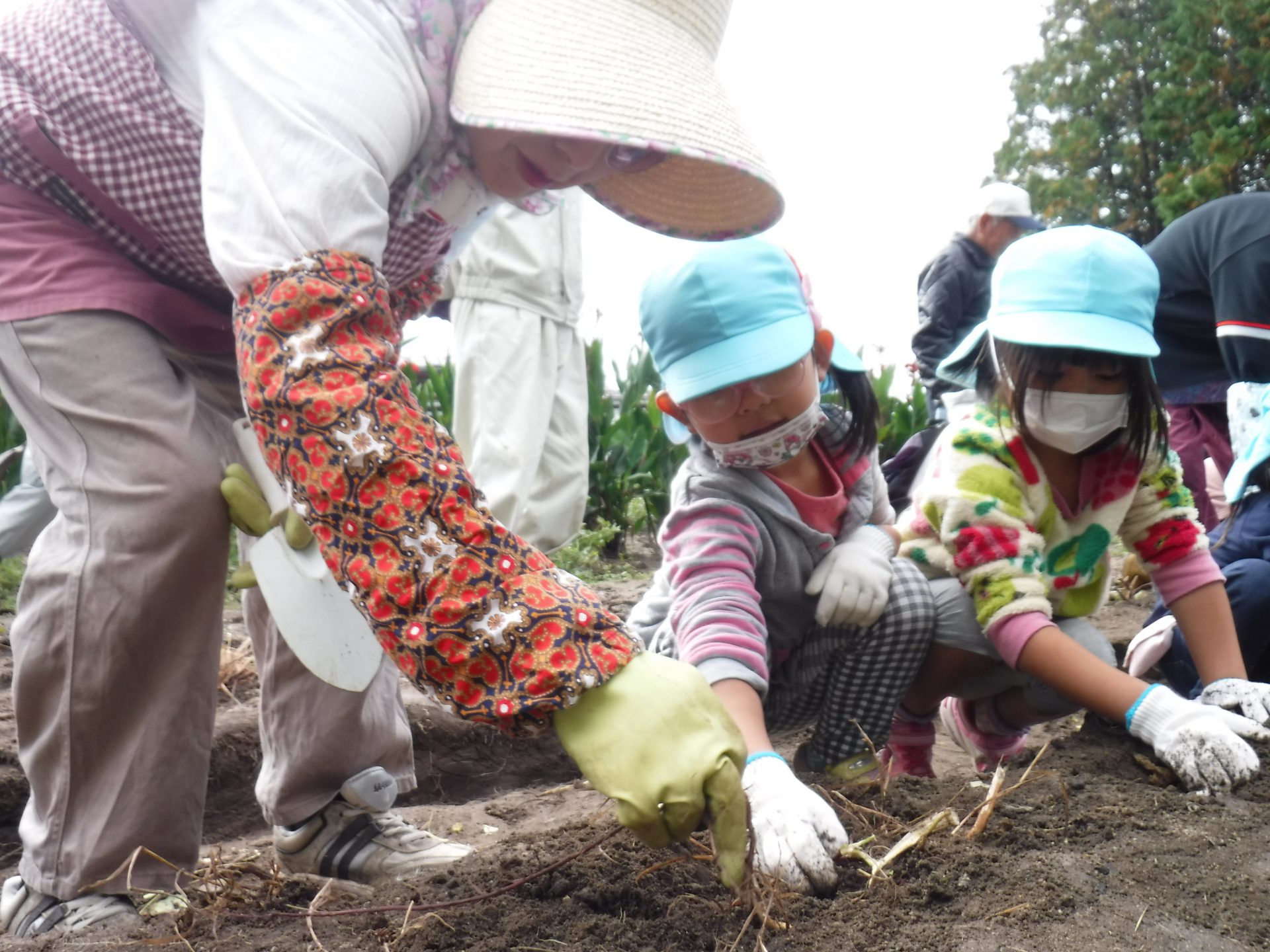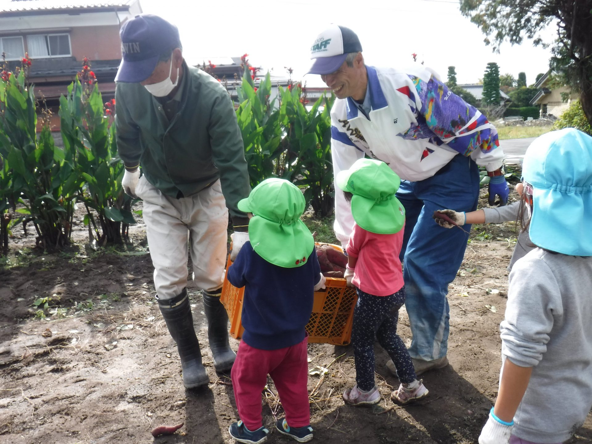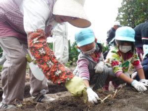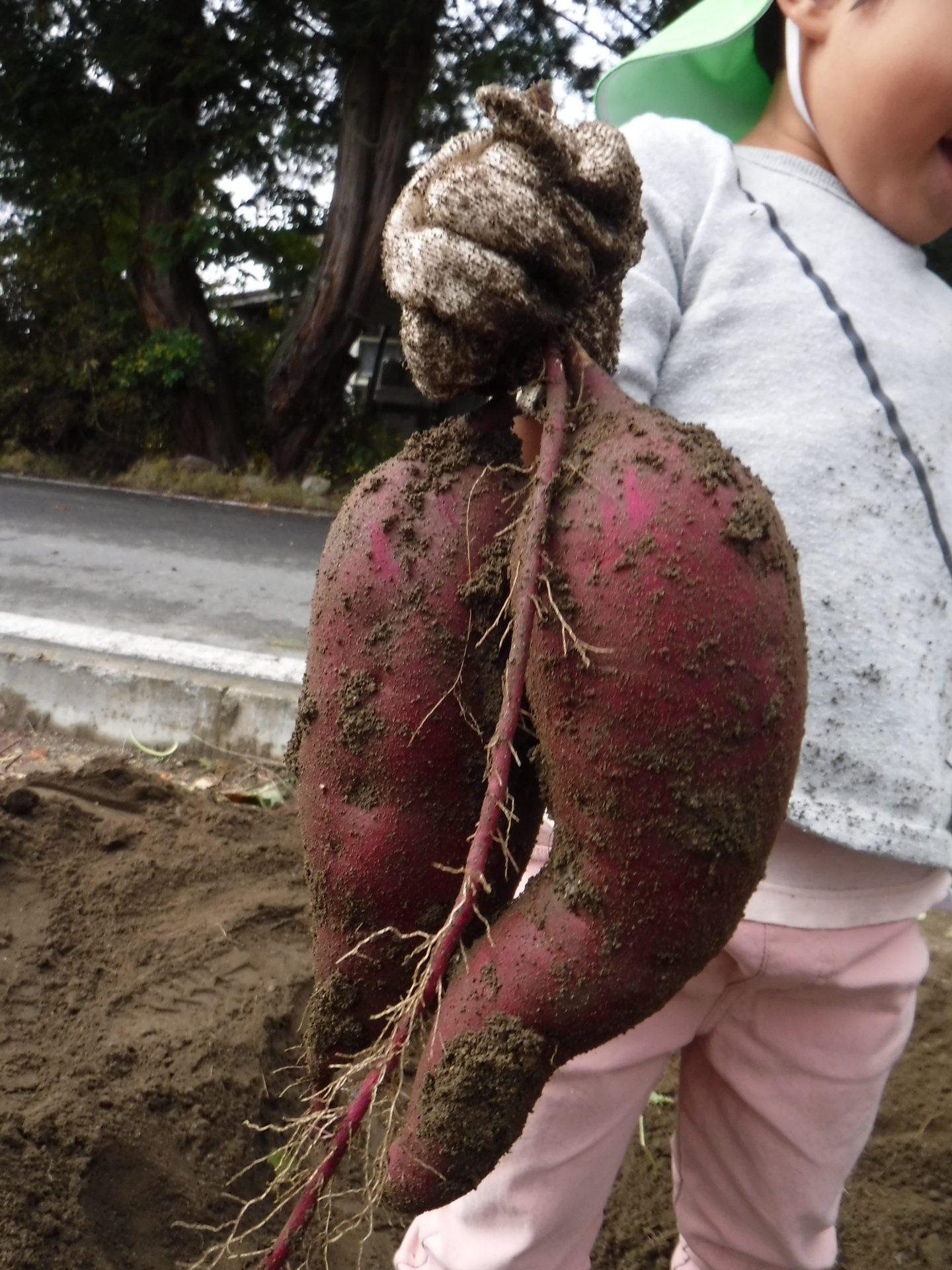5月に地域の方と一緒に植えたさつまいもの苗が大きく育ち、10月30日に一緒にさつまいもの収穫とやきいも会を行いました。
