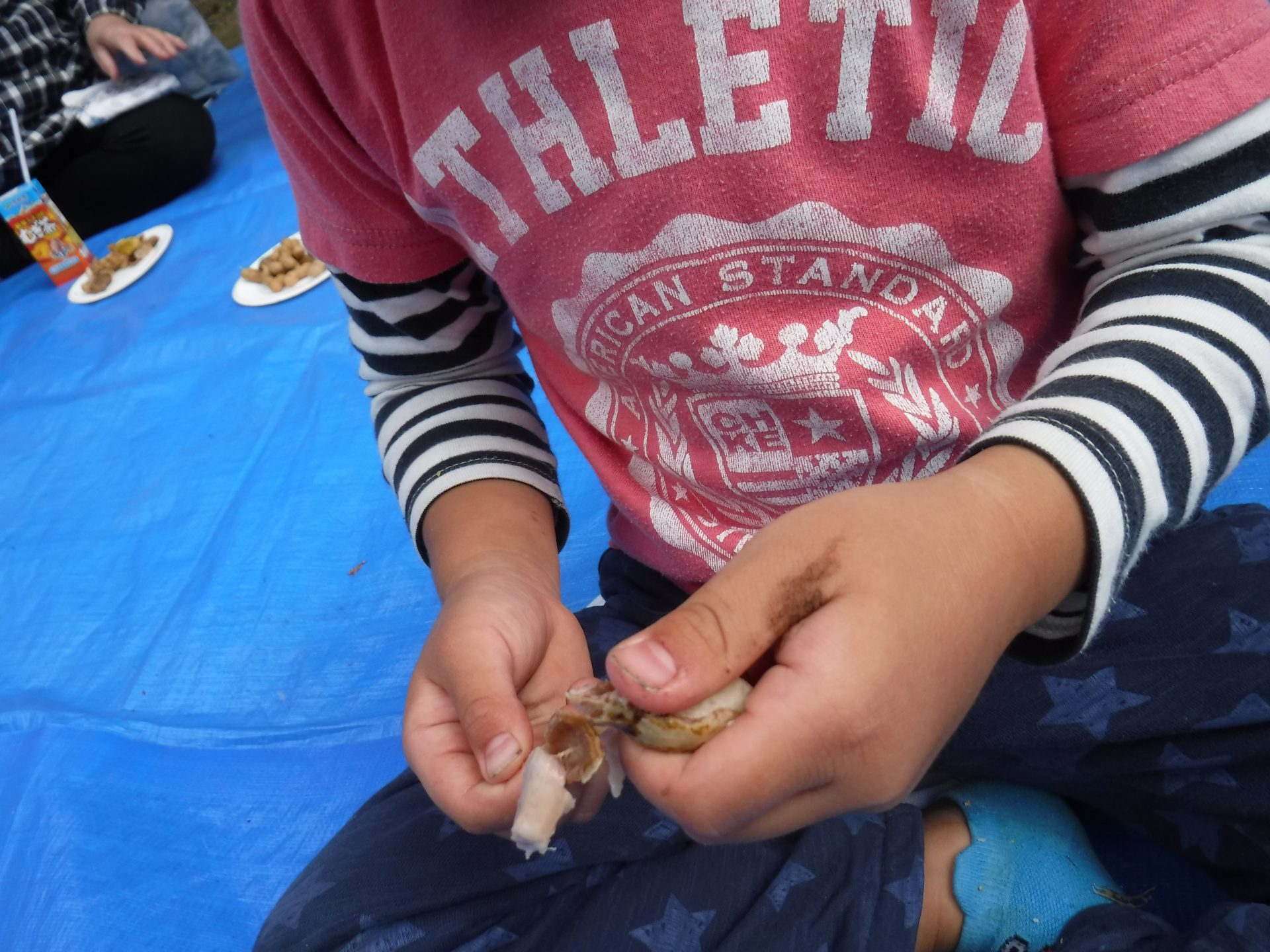 「ピーナッツもどうぞ」 「先生、むくのむずかしよー」