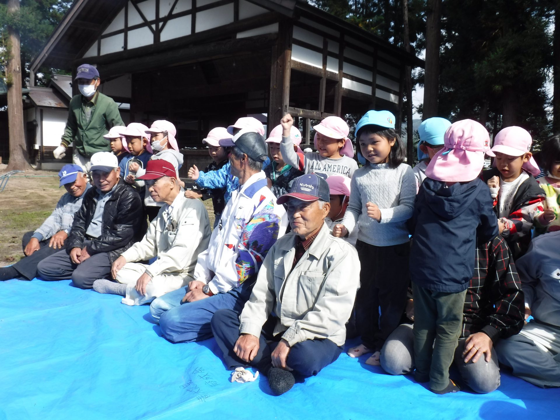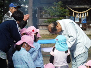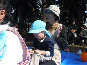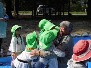 おいもを食べたあとはお礼に地域の方と 「ぎゅ~!!」 ふれあいあそびをしました。