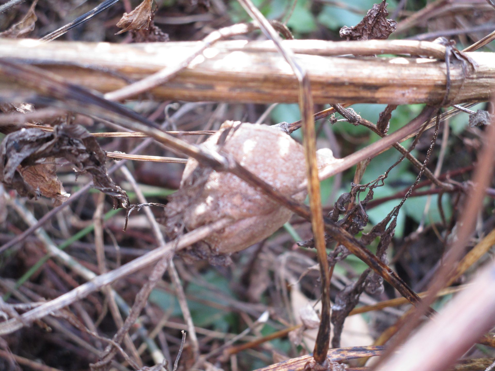 「こっちの葉っぱは丸くなって中に粒々があるよ。