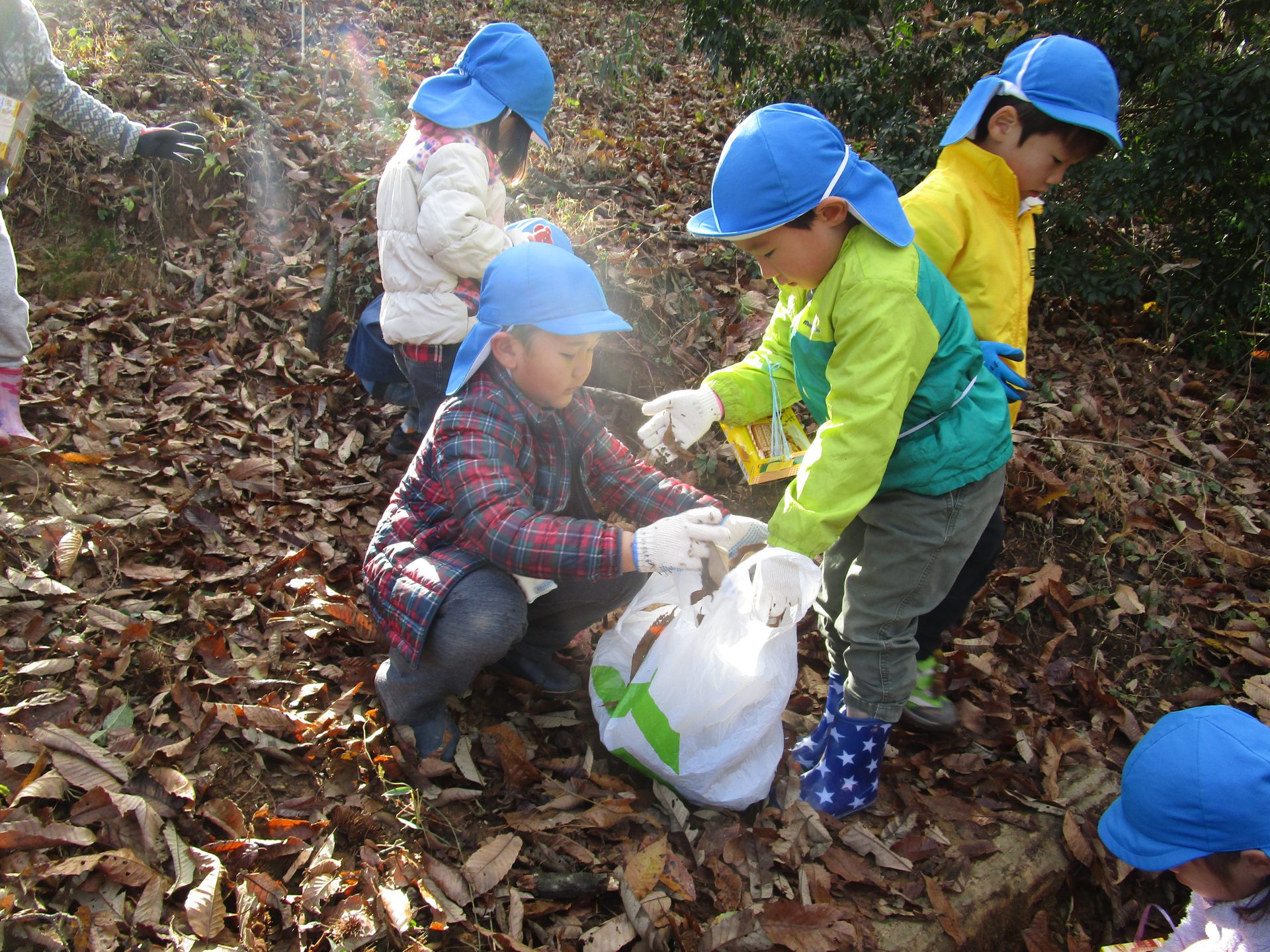 「みんなで拾ってくか」と落ち葉拾いが始まりました。