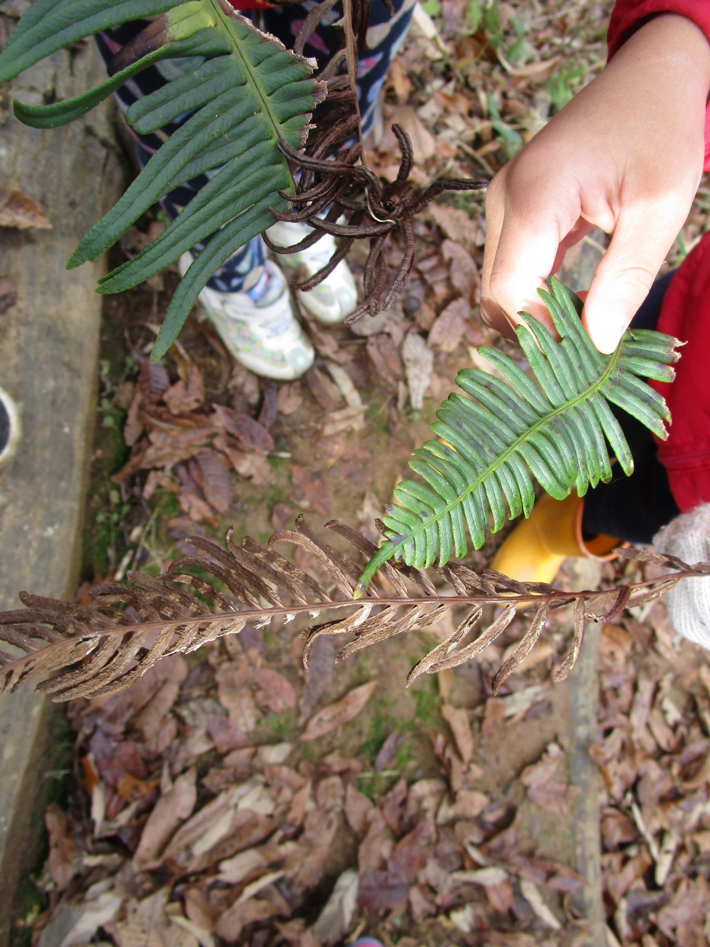 骨の形に見える葉っぱを見つけたお友達がずっと見比べていました。