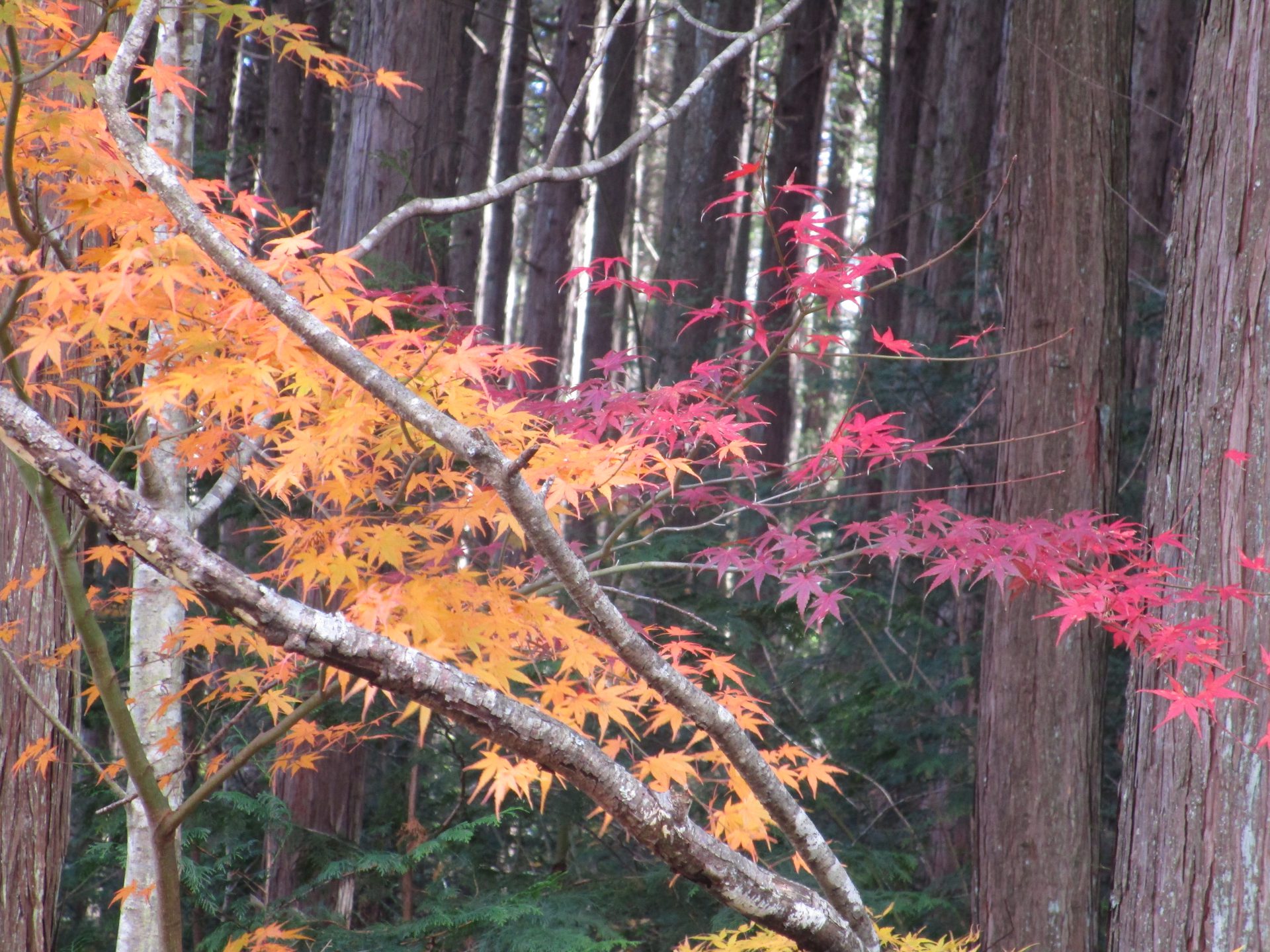 「あれと一緒かなー 紅葉」と指さす方向にはきれいなモミジがありました。