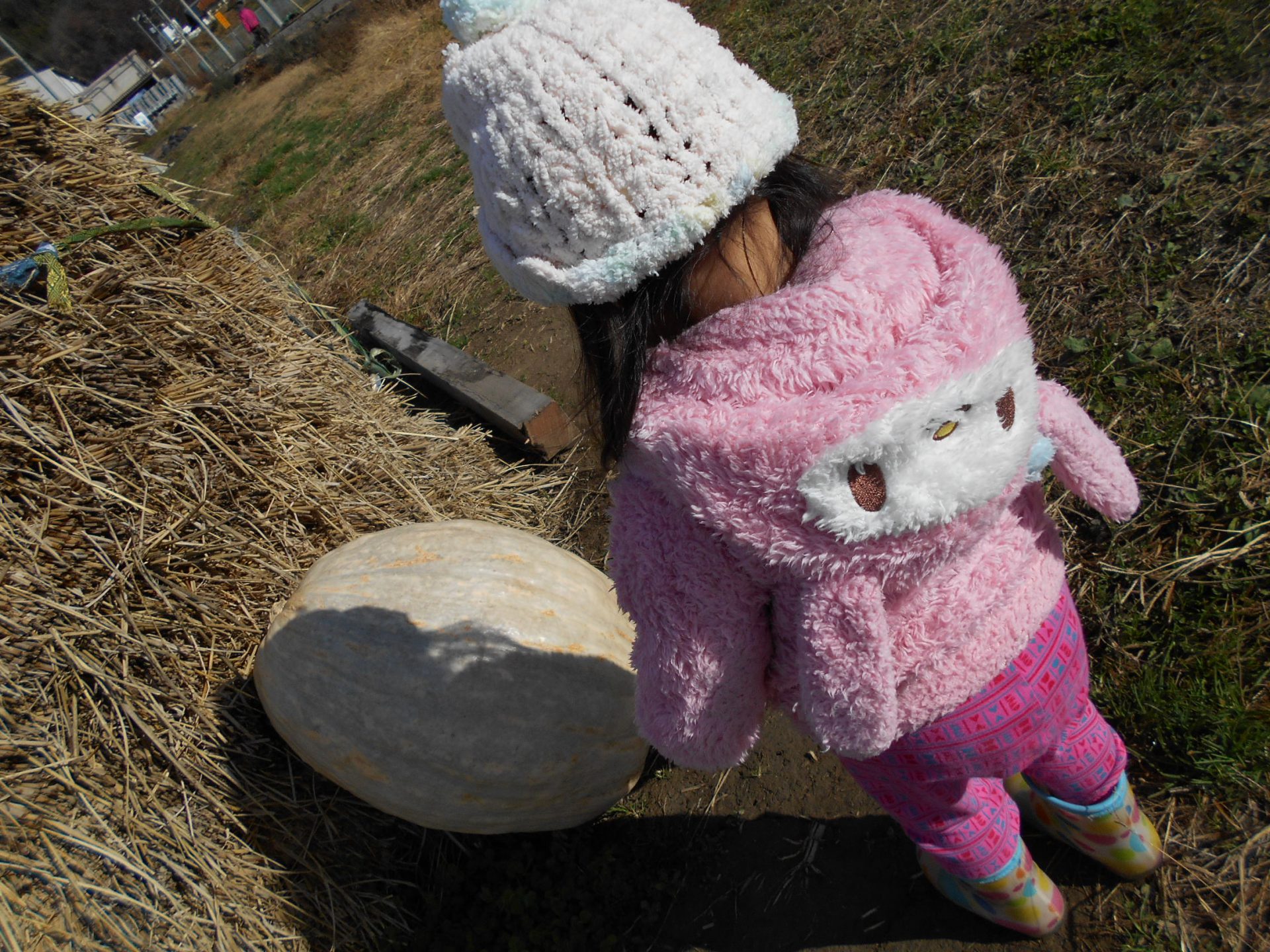 「ひよちゃん、これはカボチャだね。大きいね。」