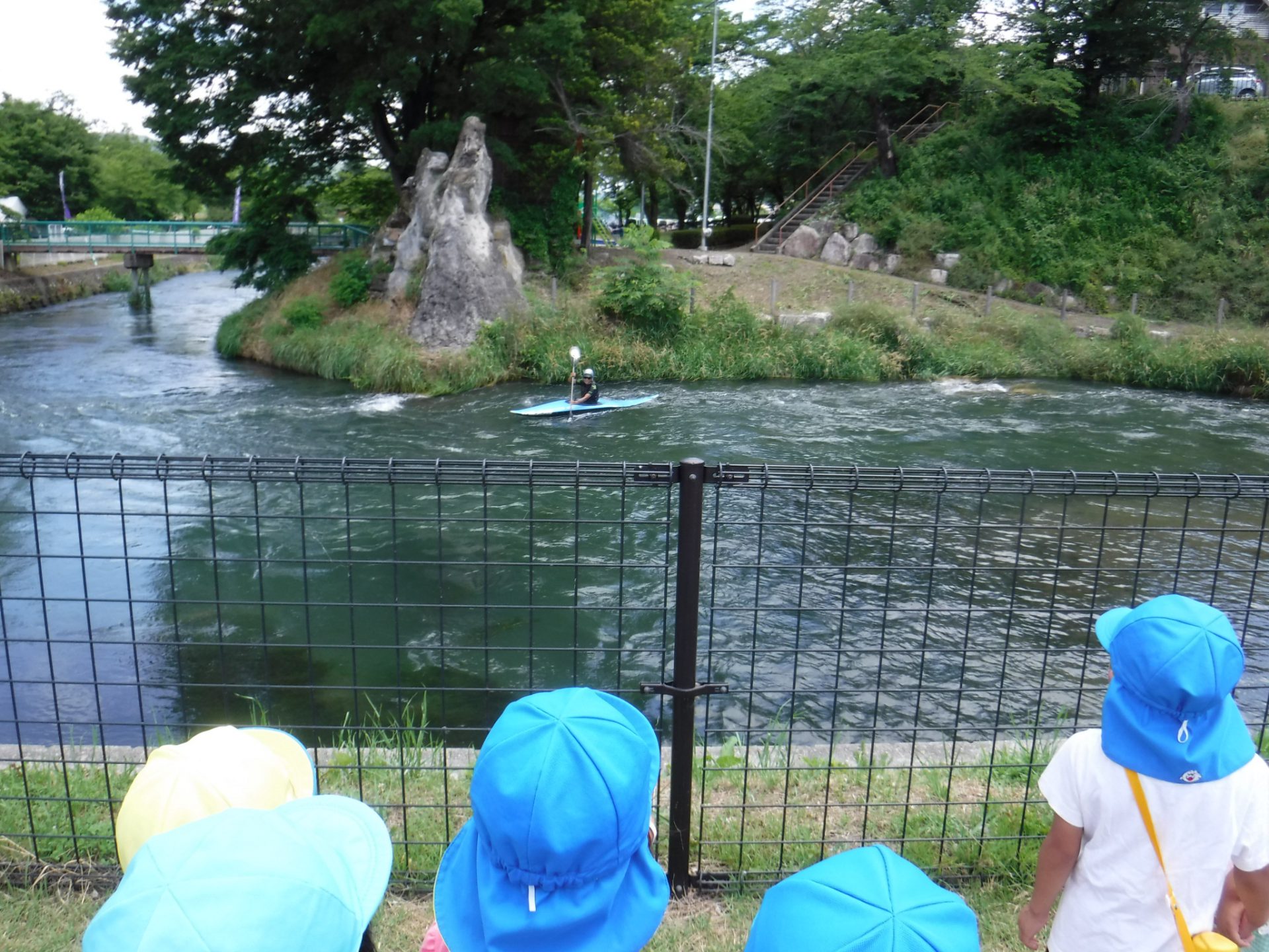 オリンピック選手も練習していた前川で、今日も練習している人がいて、みんなで見学しました!!