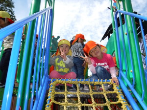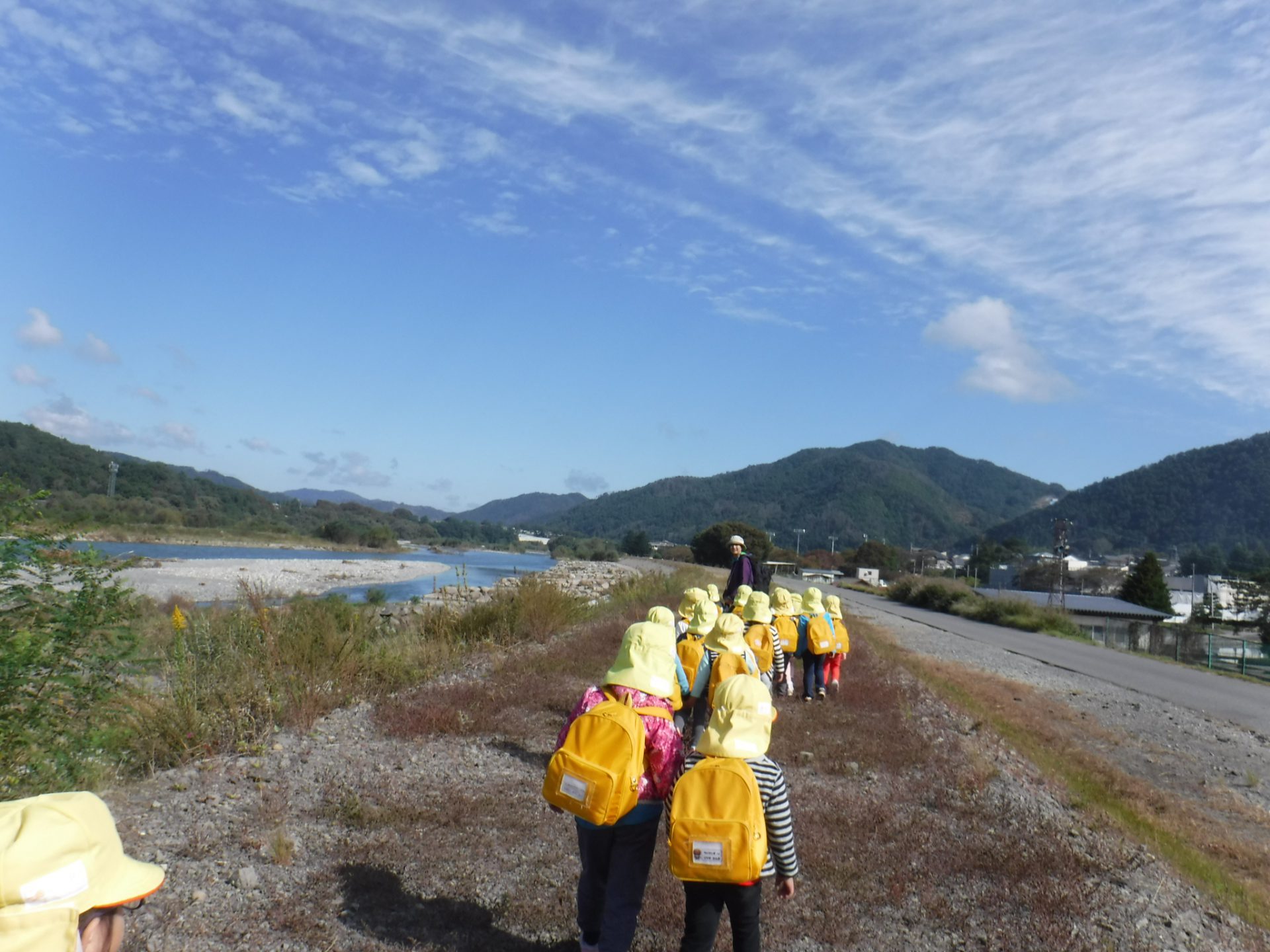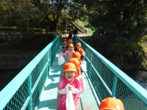 秋の遠足に行ってきました。年中さんは、あやめ公園。年少さんは、あやめ公園手前にある龍門淵公園へ年中さんと手をつないで、がんばって歩いて行ってきました。