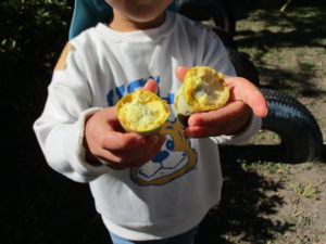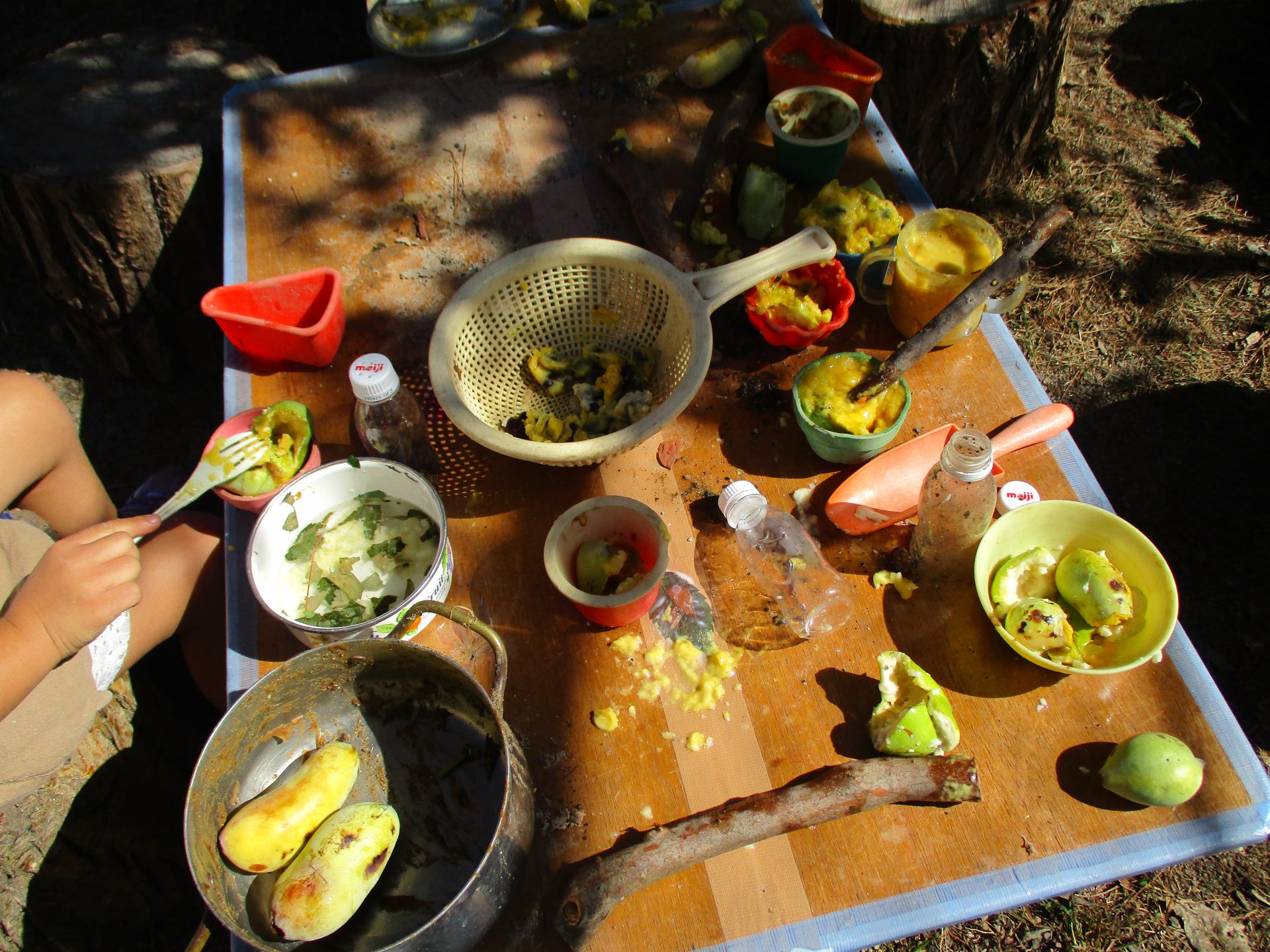 自然物を使ってのごっこ遊びの中で、普通ならそのまま捨ててしまうかもしれない種をみて、これも遊びに使おうという子ども達の感性に感動しました。