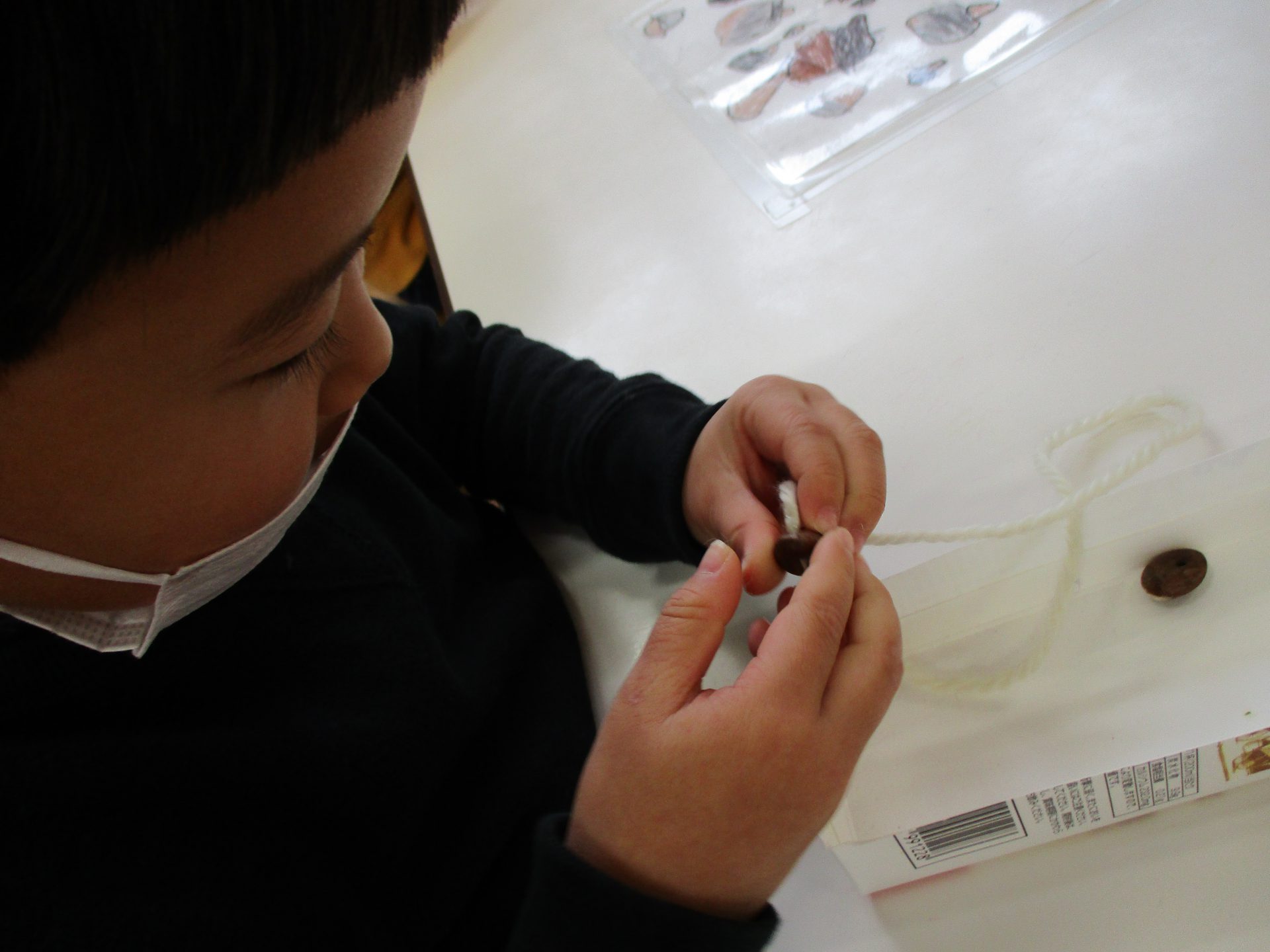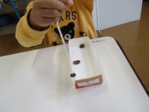 ポポの実の種を見て以前ドングリや栗の実でクラスの看板を作ったことを思い重ねたのでしょう。
