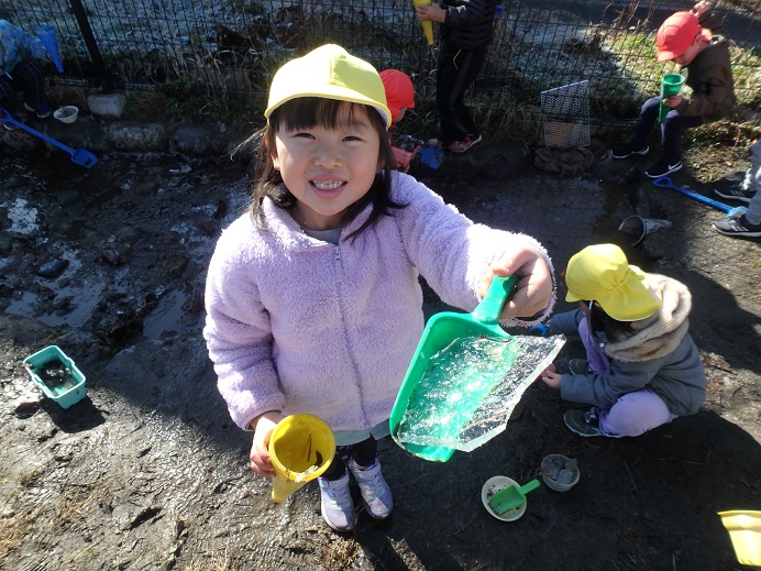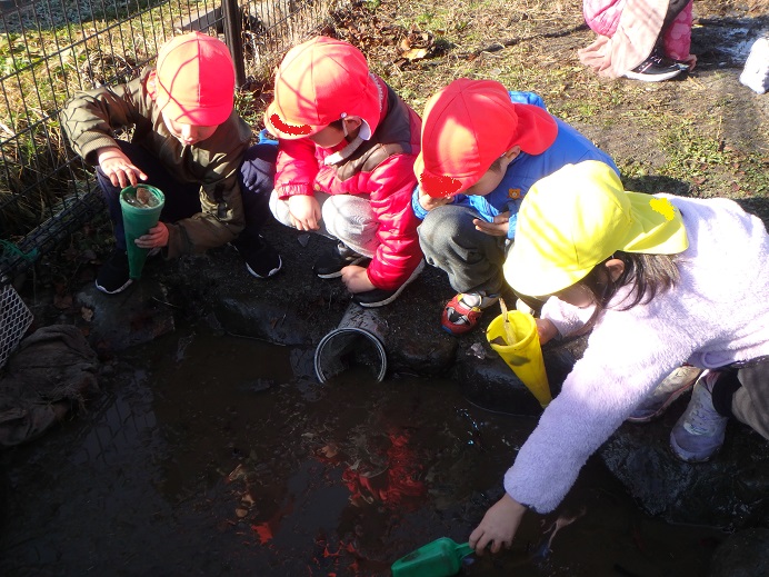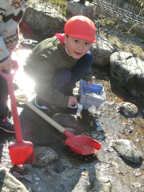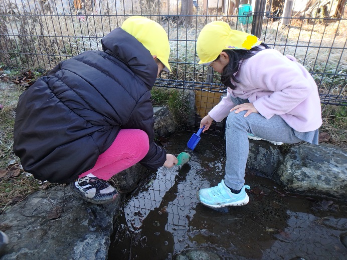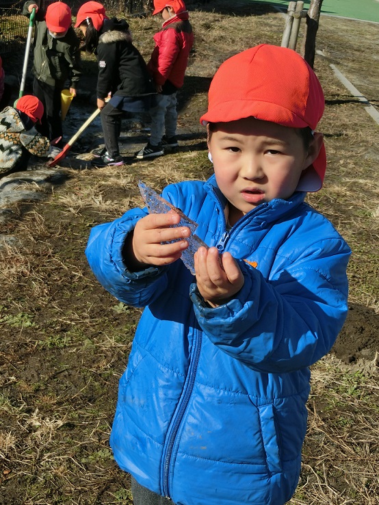 この日はとても寒く、ビオトープの水もしっかりと凍っていました。その時にしか出会えない自然の発見を通して、季節を感じる事や、体感する事の楽しさを子ども達と共有していきたいと感じました。