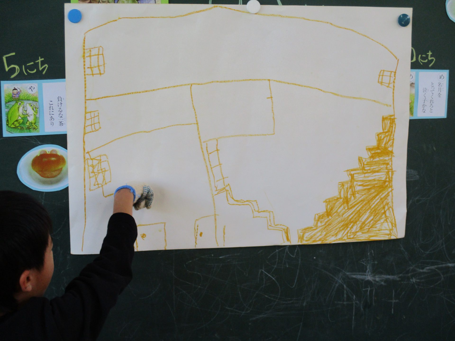 そして、もう一度みんなでどんな家にするのかイメージを共有しようと、家作りのリーダーに絵を描いてもらいました。