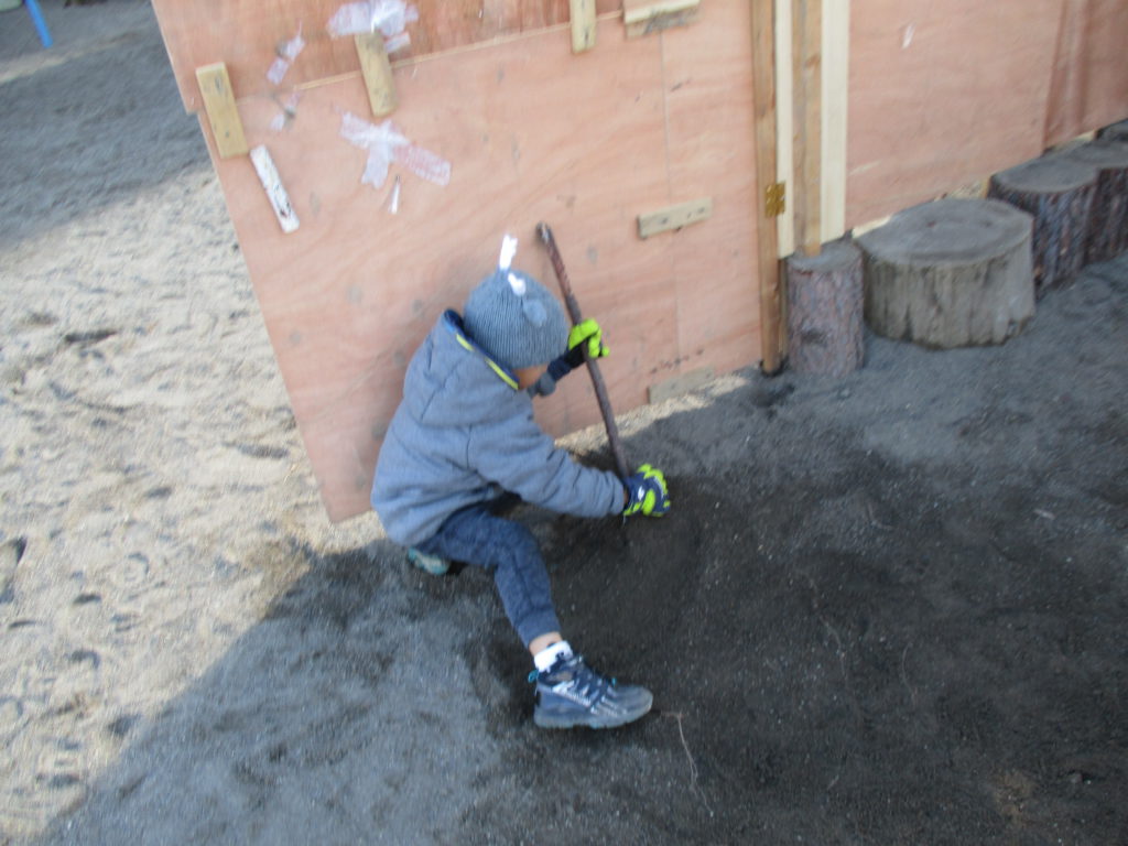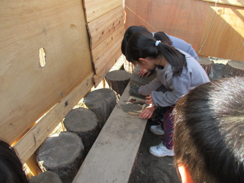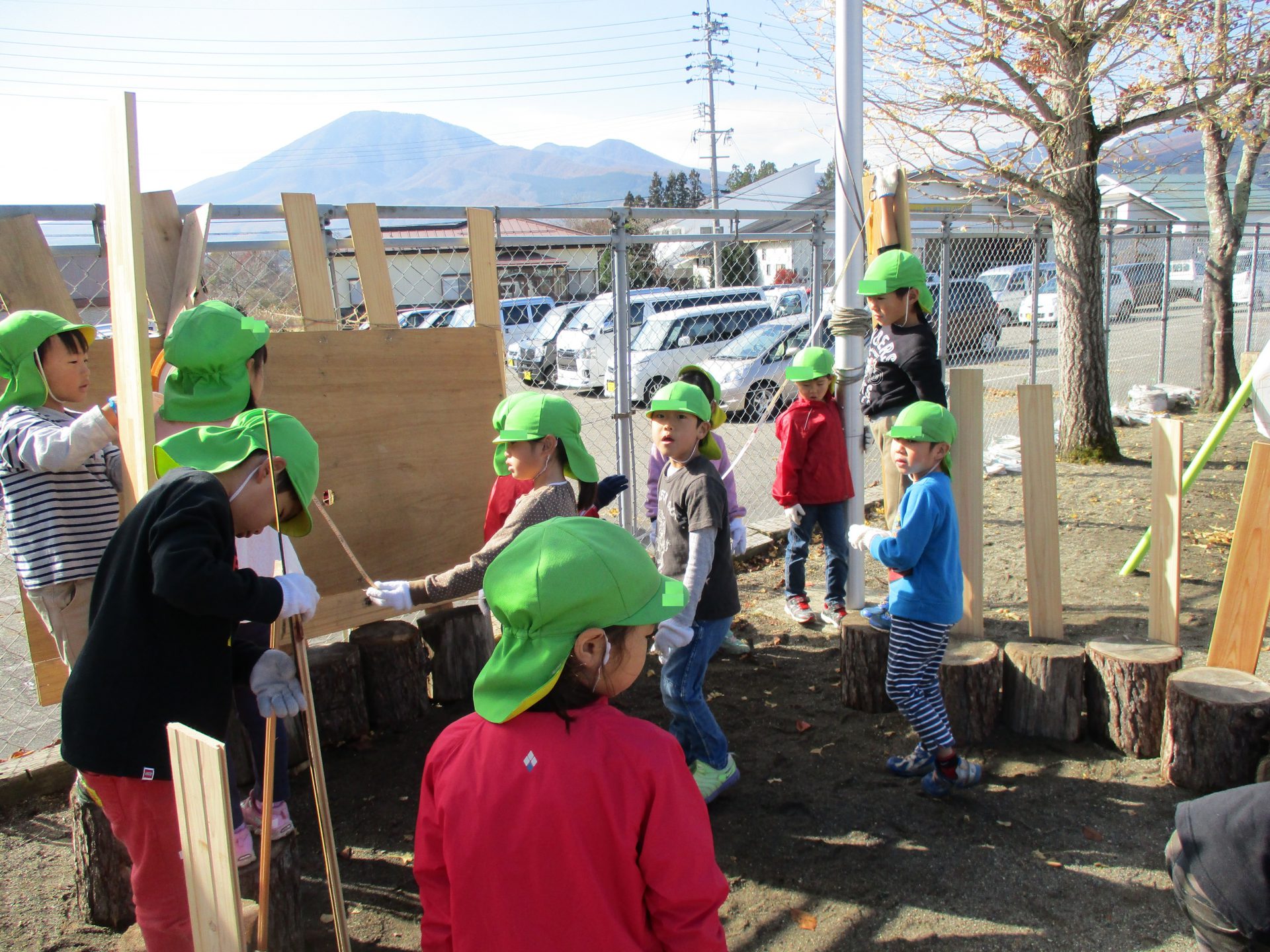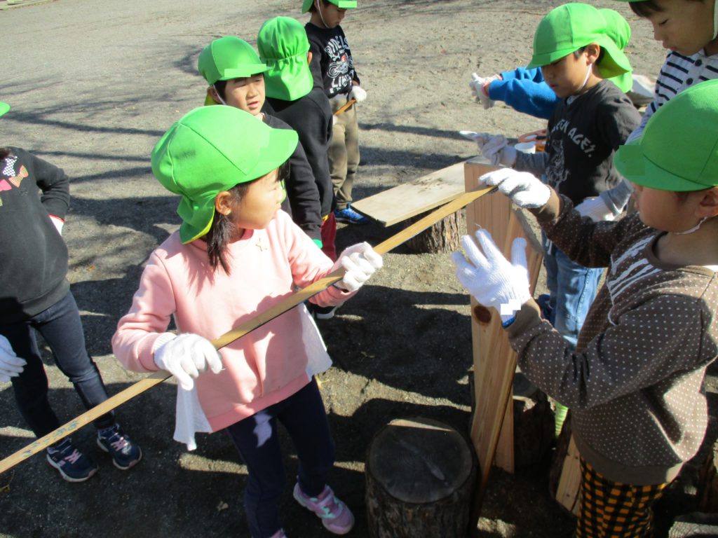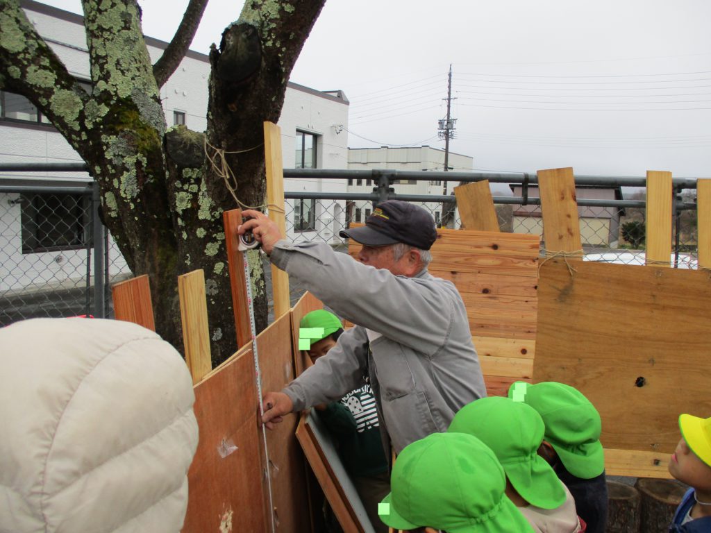 できた家ではもう、子ども達はごっこ遊びが始まっています。出来上がった家で子ども達が残り少ない保育園生活の中で思う存分楽しめたらいいなと思います。