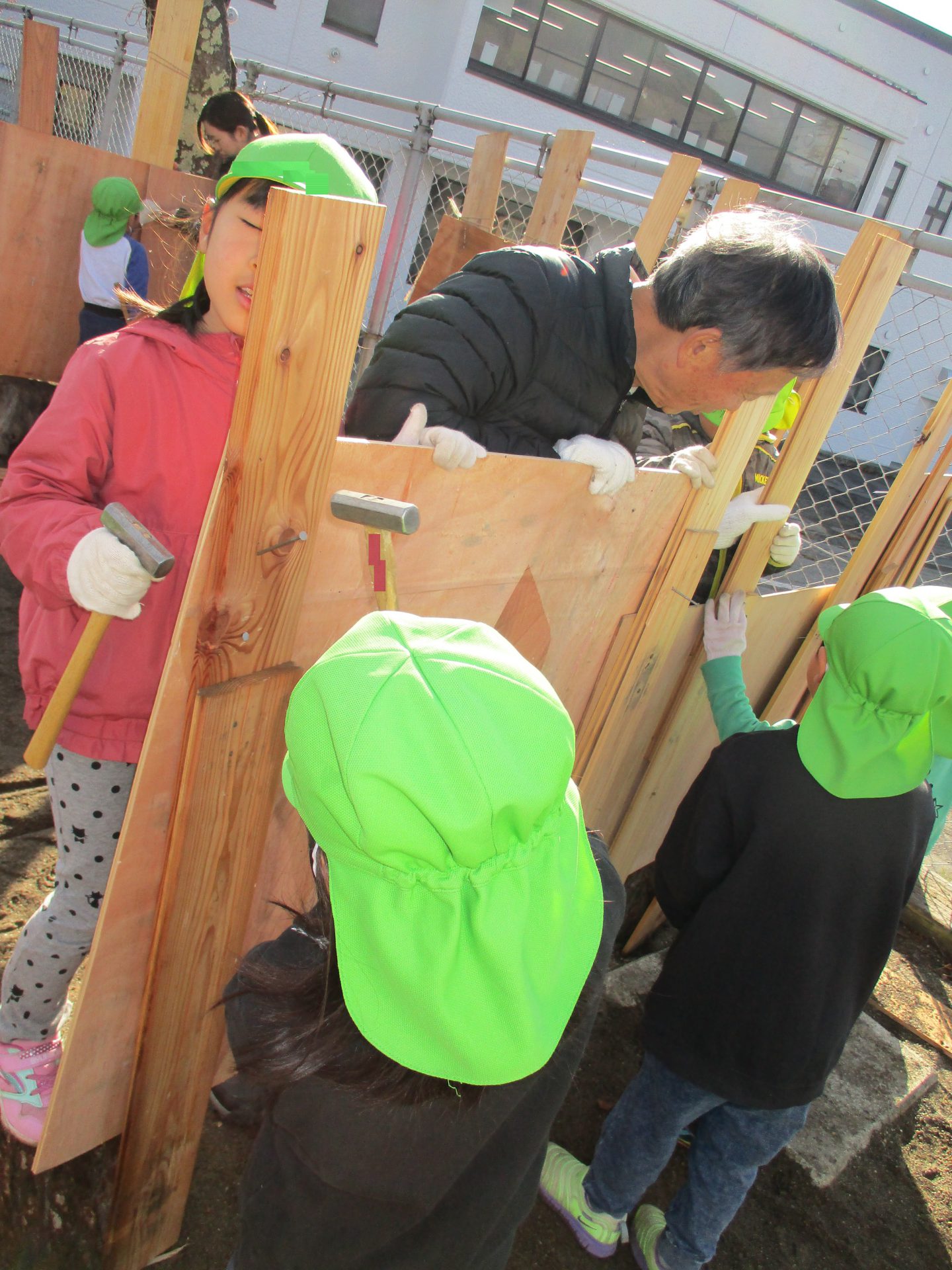 クラスの子のおじいちゃんが様子を見にきてくれて一緒に手伝ってくれたのです!