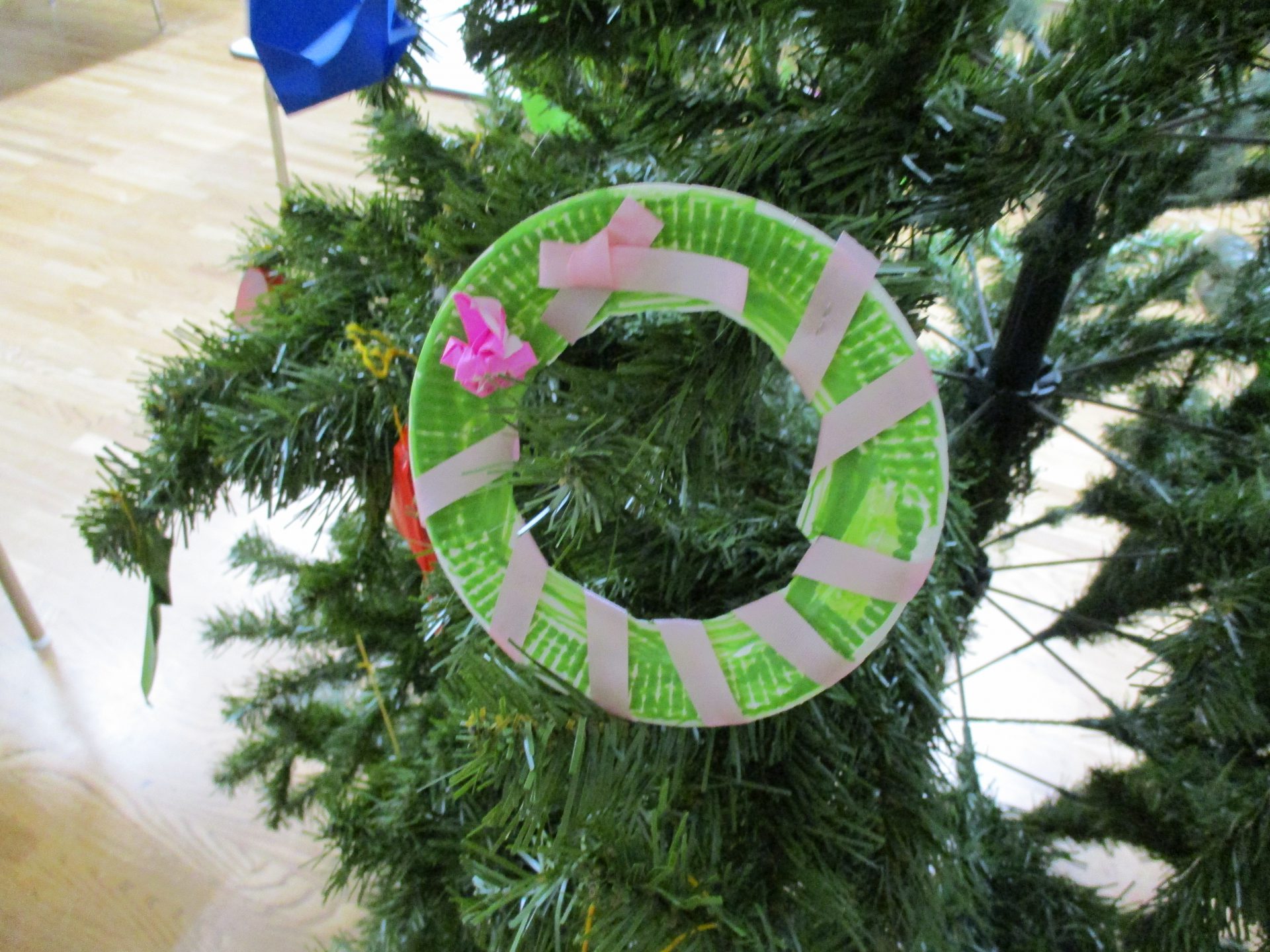 年長の子ども達に手伝ってもらい、ツリーを組み立てました。「できたね!でも、なにか足りない、、」「私の家にもツリー飾ってあるけど、サンタさんとかキラキラした飾りを飾ったよ!」と。「みんなで飾りを作ってクリスマスツリーを作ってみる?」と提案したところ、子ども達の目はキラキラ!「どんなのにしようかなぁ⁇」「お家にある飾りを真似してみようかな〜?」