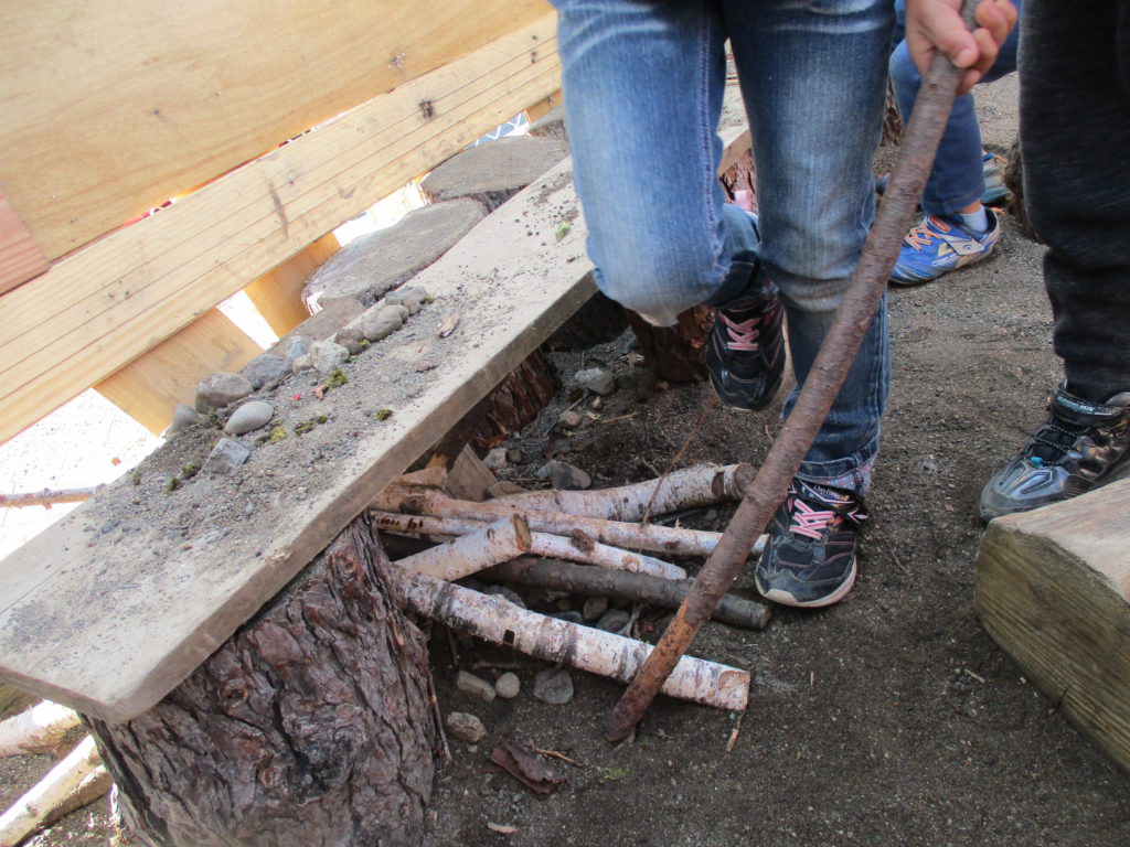 この木の家作りは作業が進むにつれて子ども達の背の高さや力では限界がきていました。