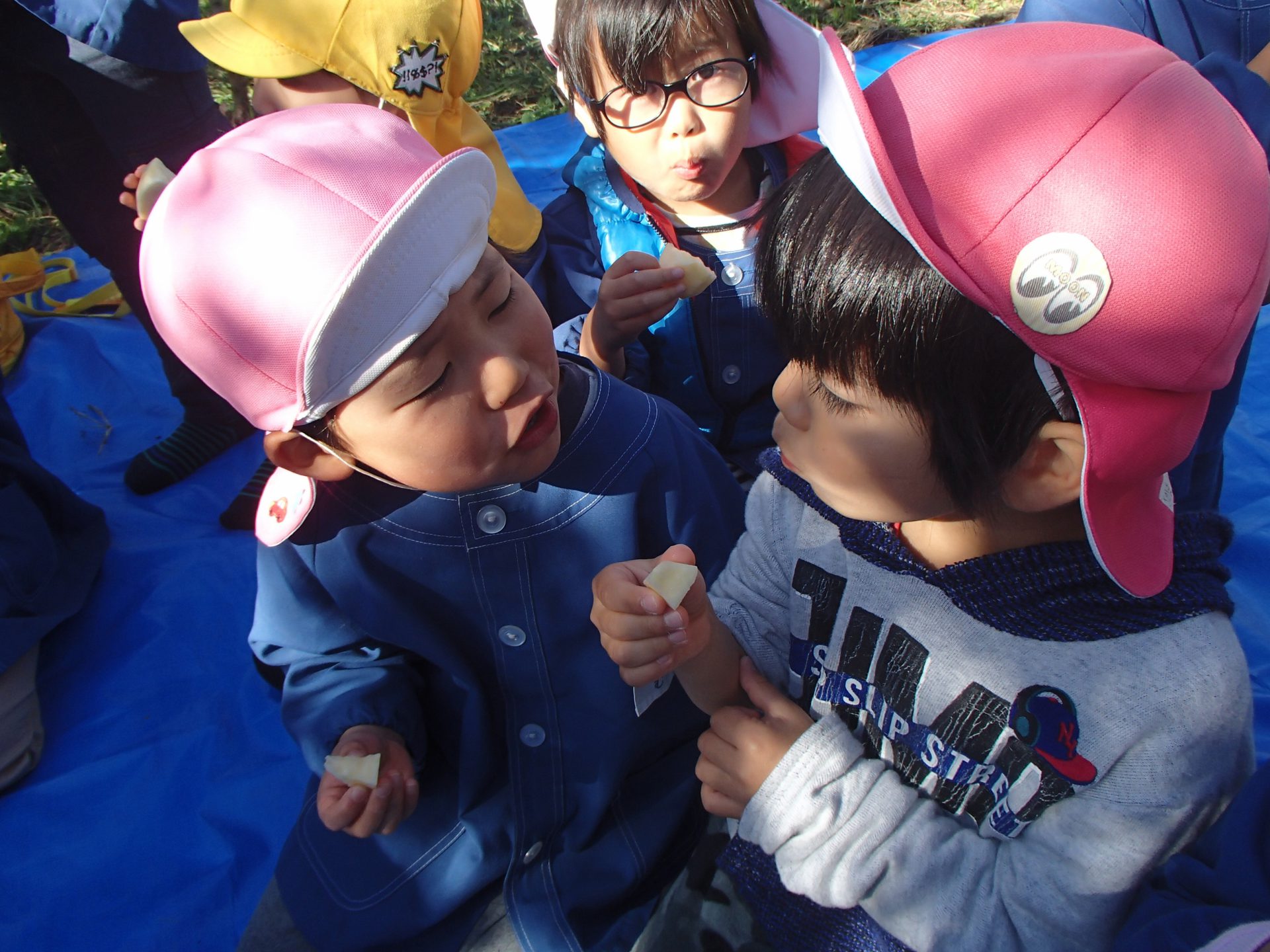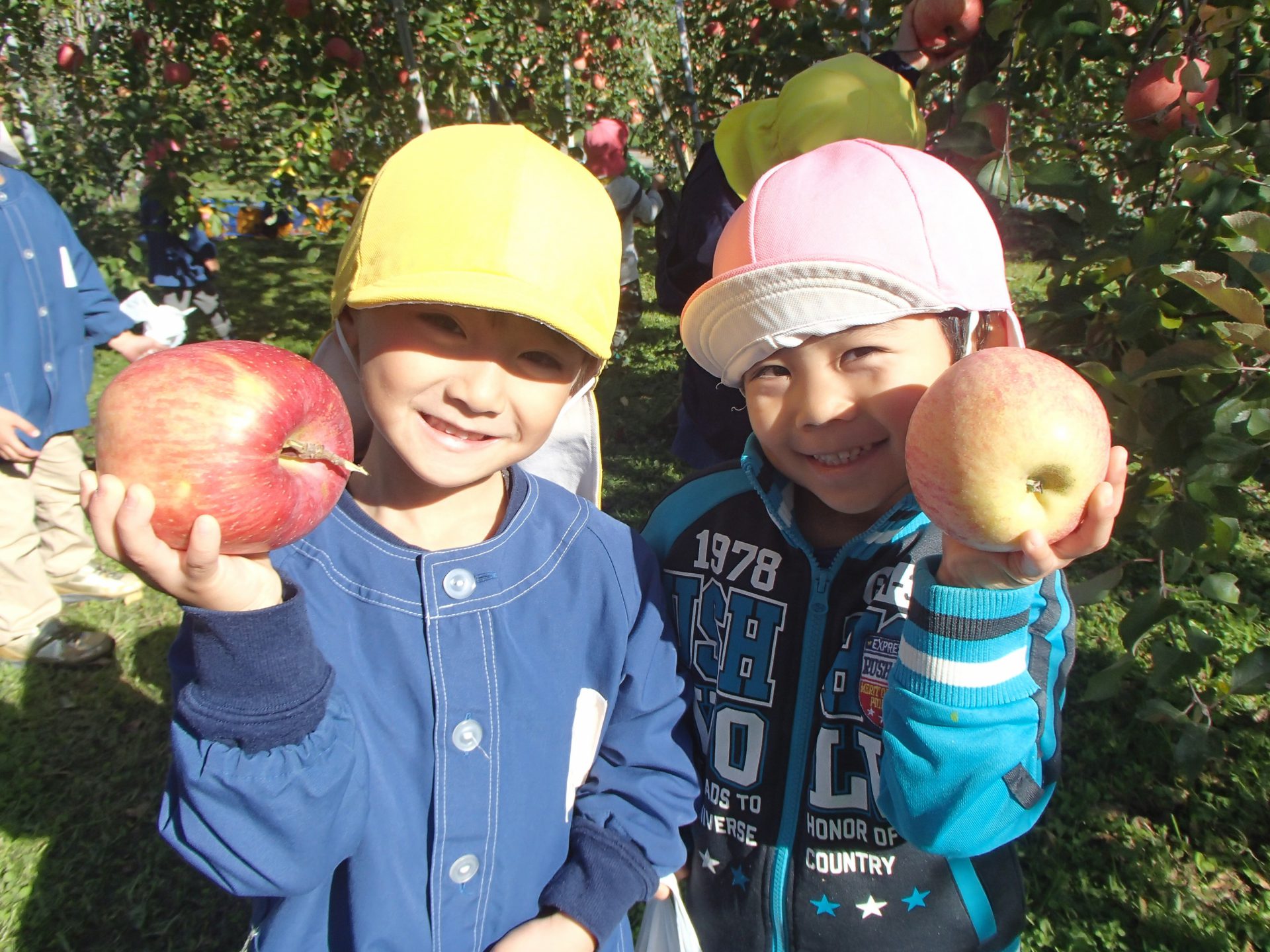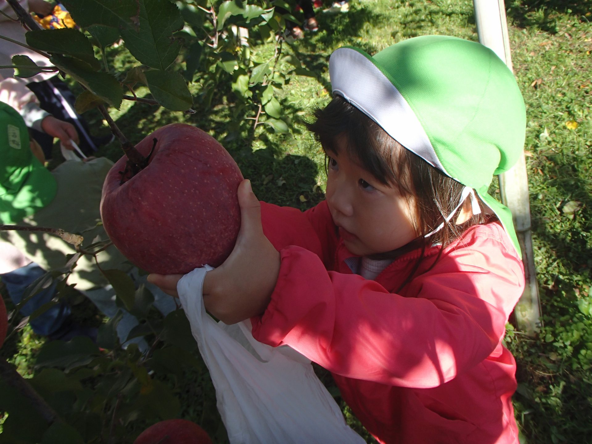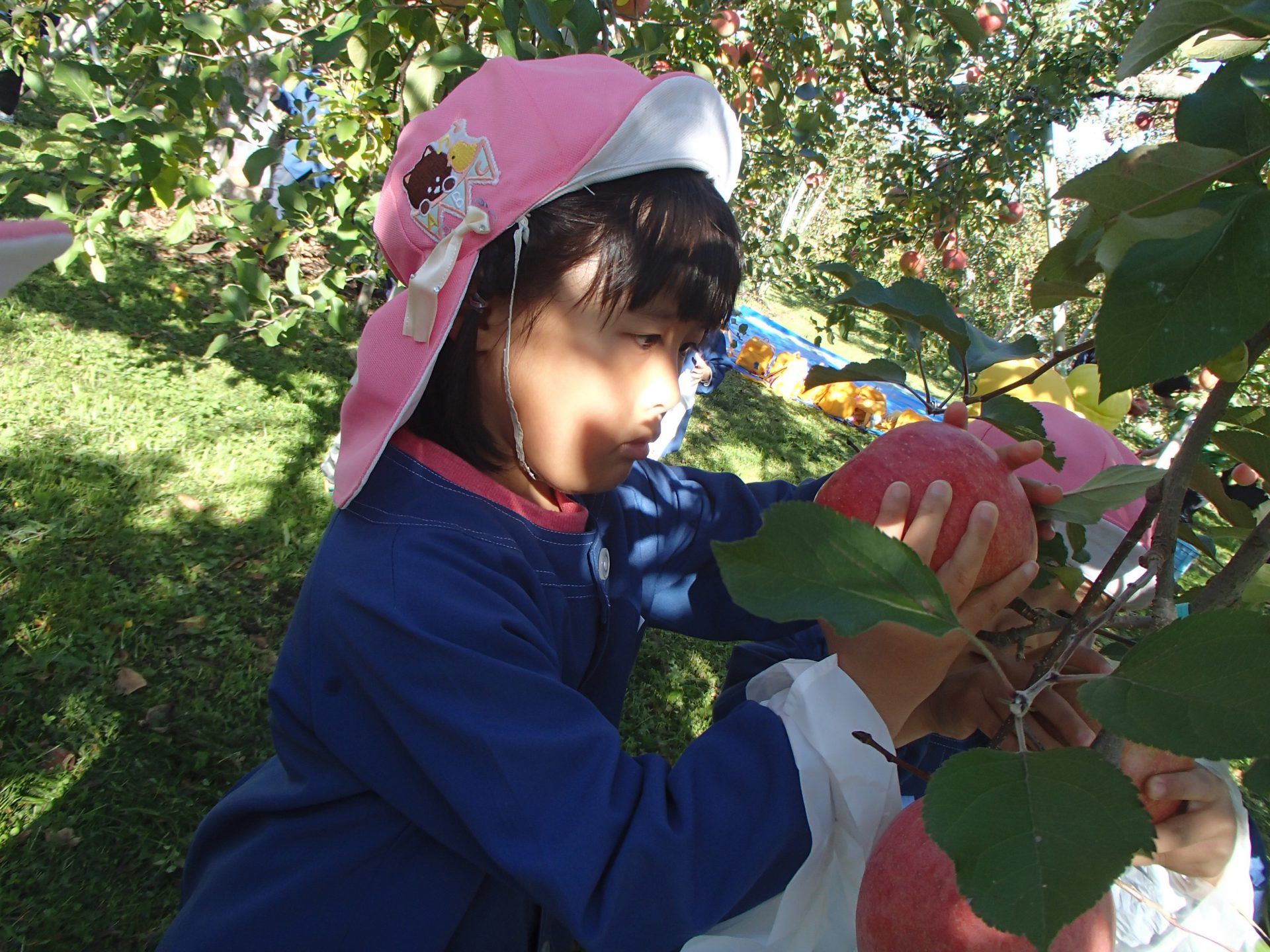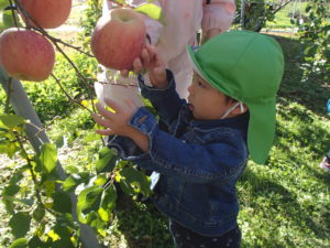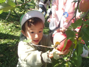 ・自分で大きさを見たり、赤いりんごを見比べながら、3つ数を数えるなど、りんご狩りの中で色々なことを感じ学ぶことができたと思う。