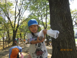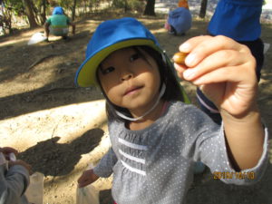 「どんぐりたくさんひろったよ!」「大きな松ぼっくりもあったよ!」