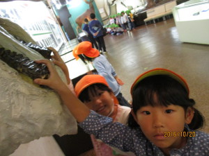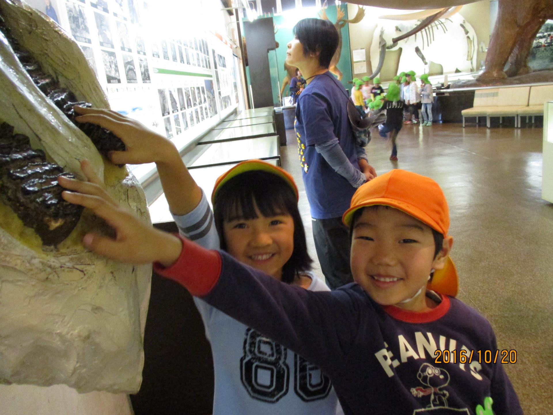 館長さんのお話を聞いて、ナウマンゾウについてお勉強した後に館内を見学しました。