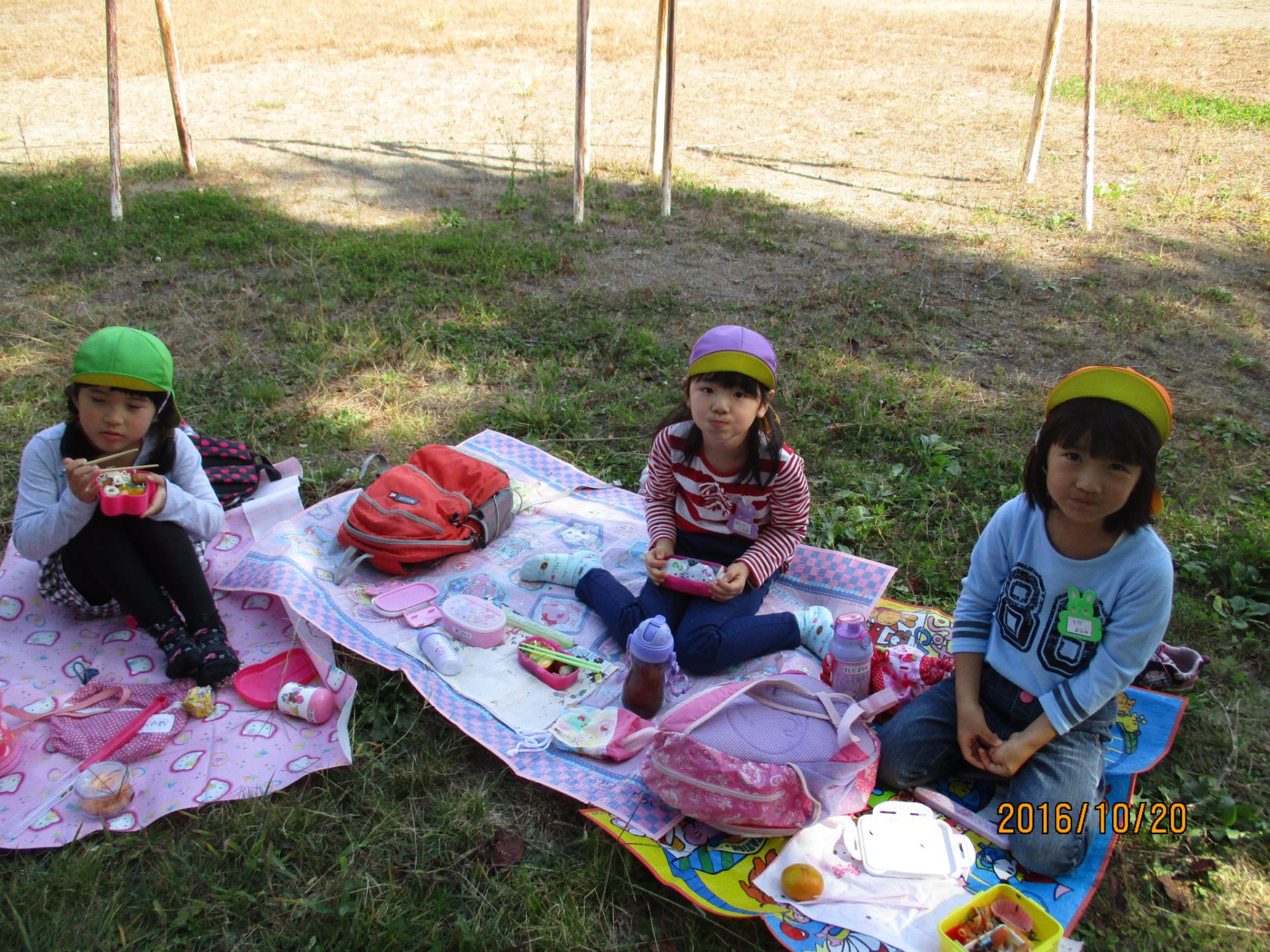 「おにぎりおいしいね。」「また遊ぼうね。」