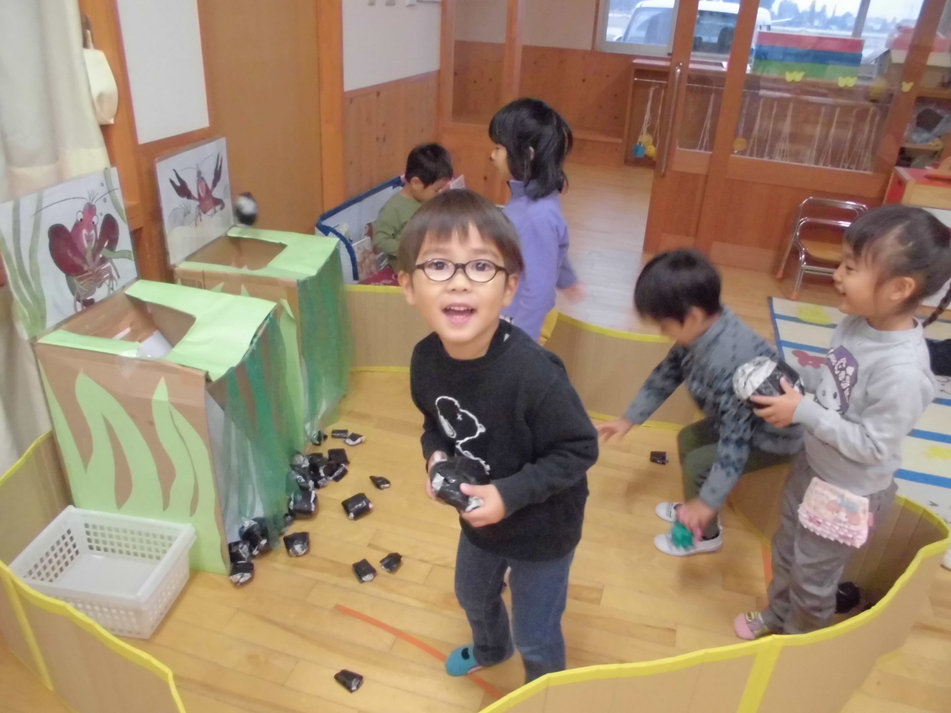 ザリガニに変身してザリガニダンスをしたり、お家をつくって遊んだりしました。