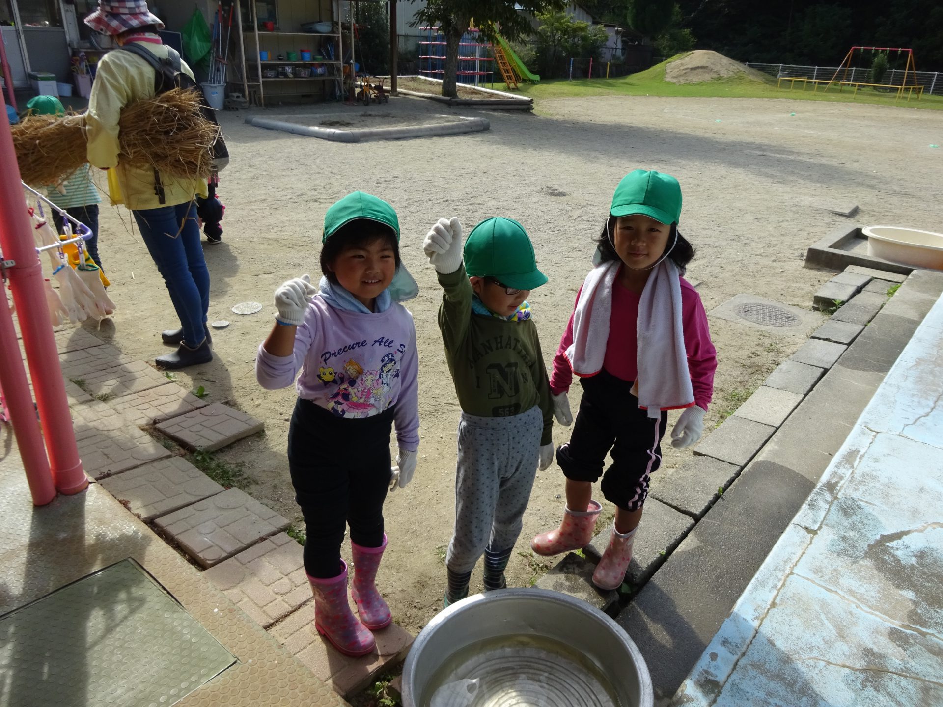 *保護者会の皆様、地域の皆様に助けていただきながら、今年もおいしい野菜やお米を収穫することができました。子どもたちと一緒に食欲の秋!を十分味わう事ができました。