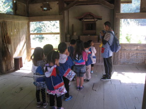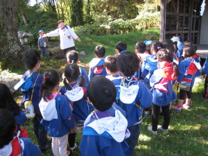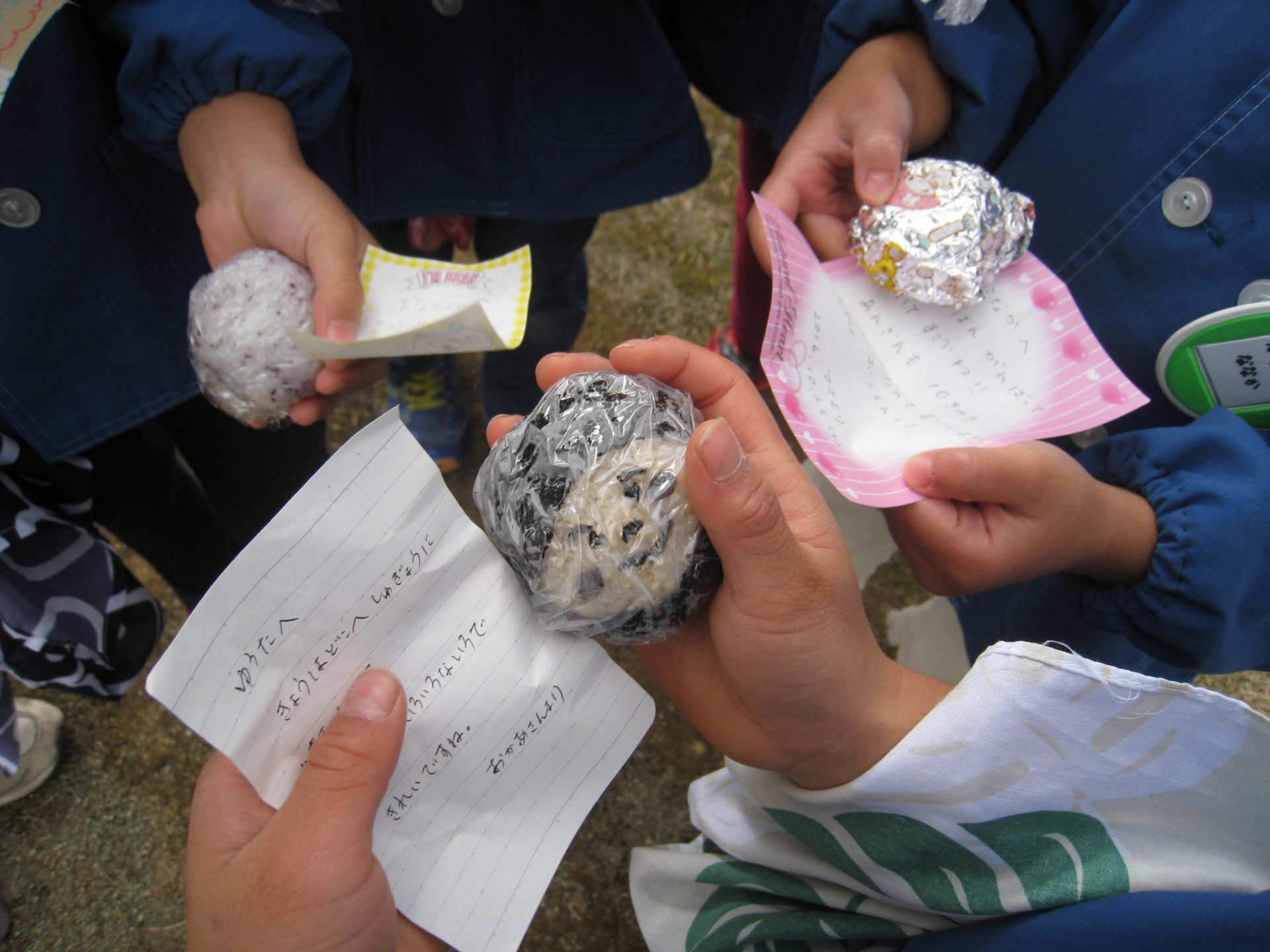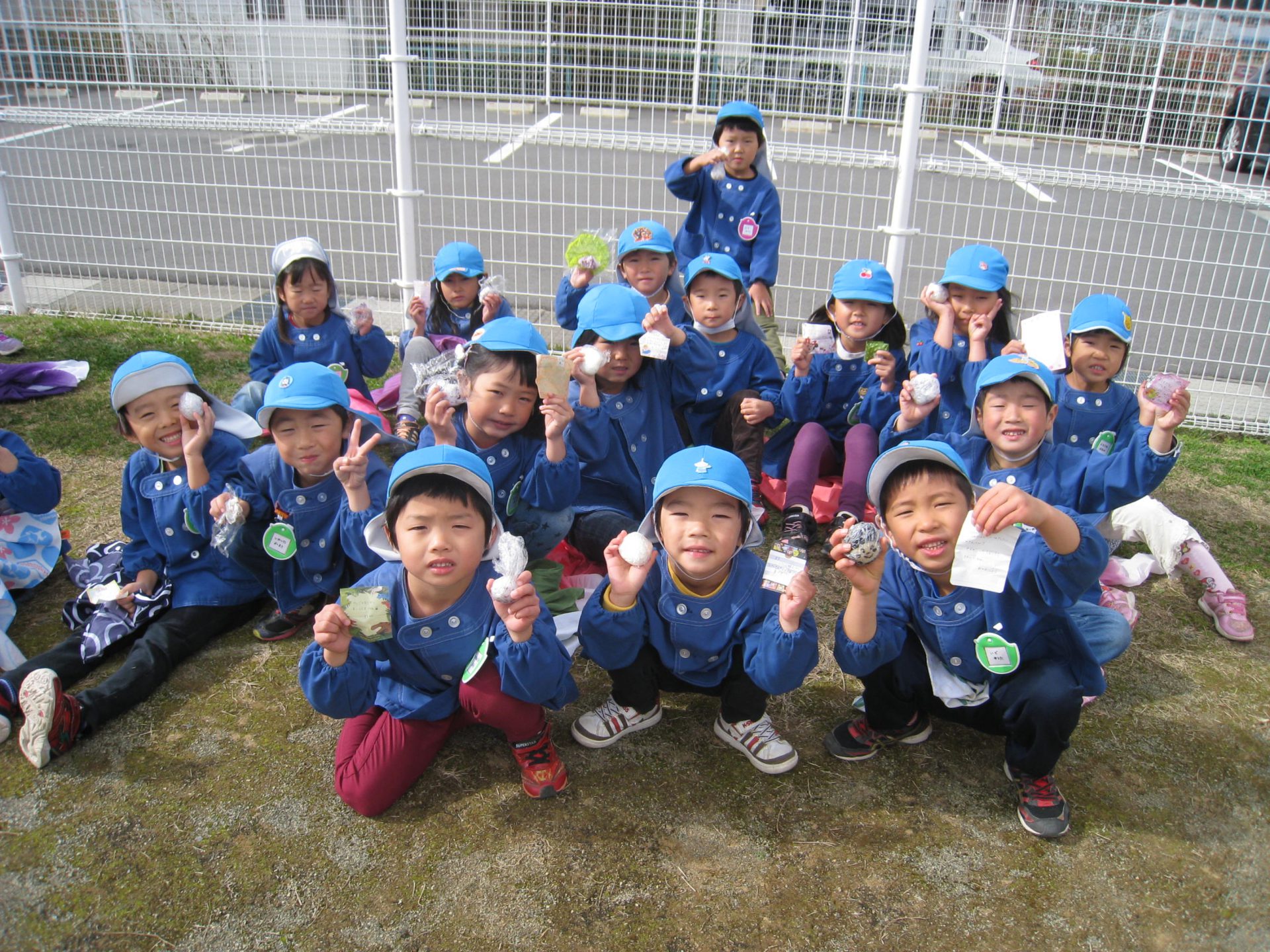 泉保育園の近辺には、昔から語り伝えられているお地蔵さんや民話などがたくさんあります。その場所を訪れたり、見たりすることで色々な経験ができると思います。散歩先で食べるおにぎりも最高です。おにぎりを作ってくれたお母さん。ありがと~。地域の方やおうちの方の協力をいただきながら成長している泉っこたちです。
