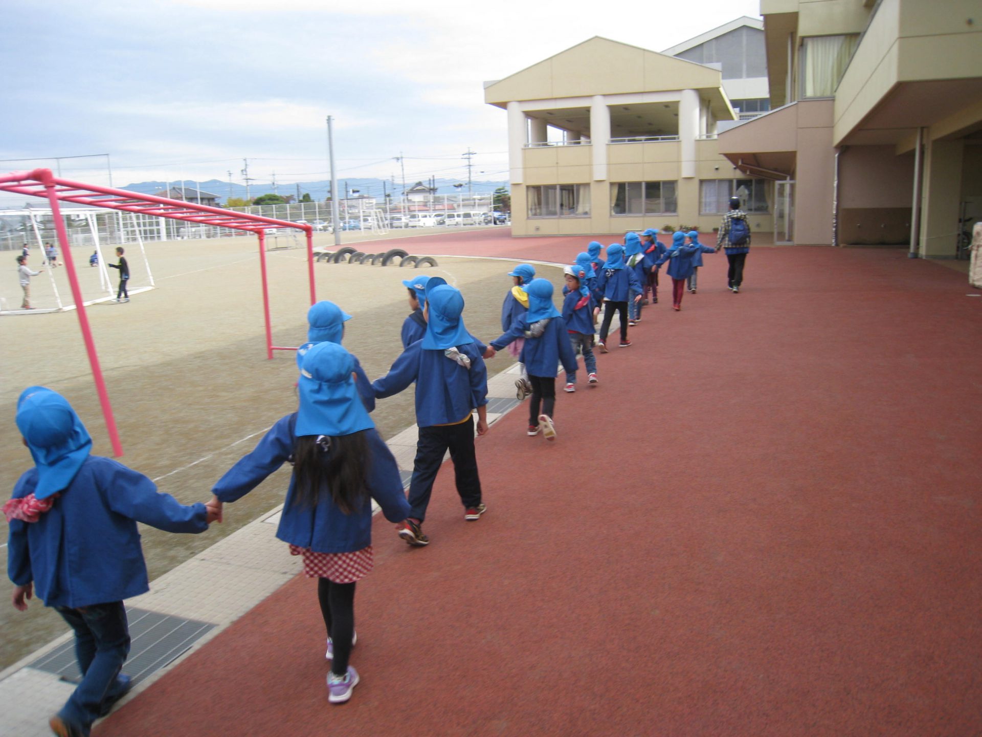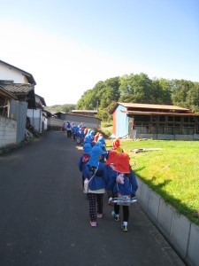 仲良しペアさんと手をつなぎ、おにぎり持って出発。