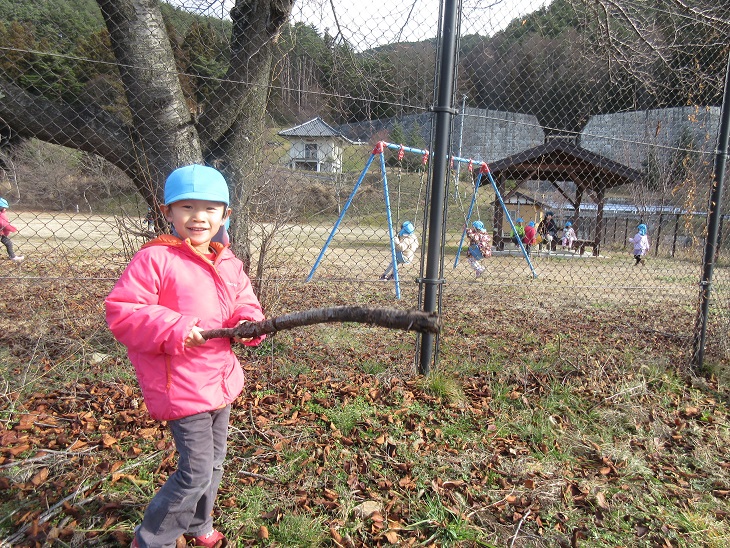 木の枝なども拾って自然物の発見も楽しみました。