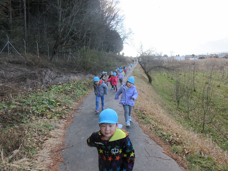 冬の冷たい空気を頬で感じながら歩くことで、子ども達は冬の訪れを肌で感じる事が出来たのではないかと感じました。