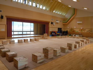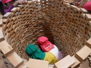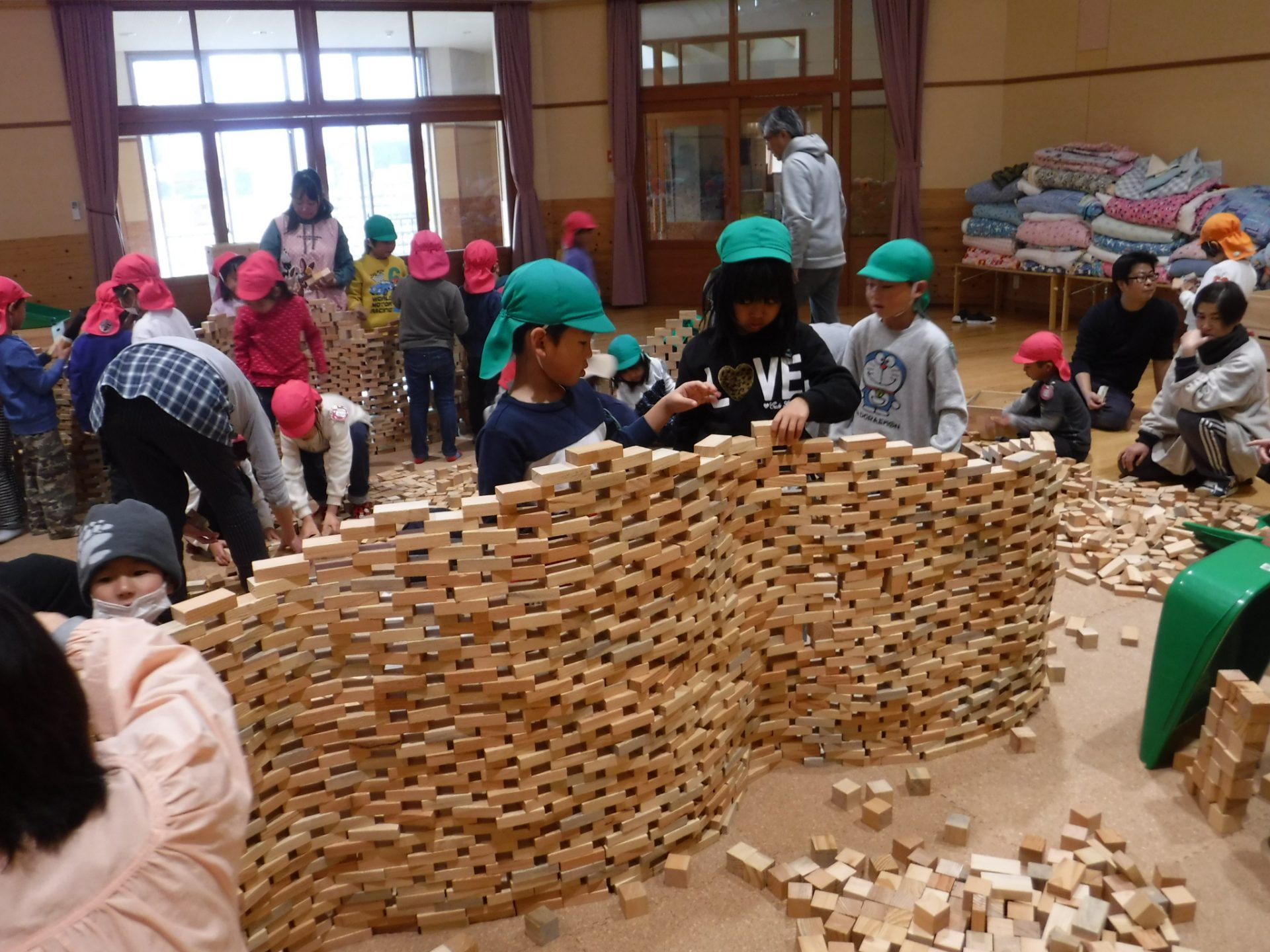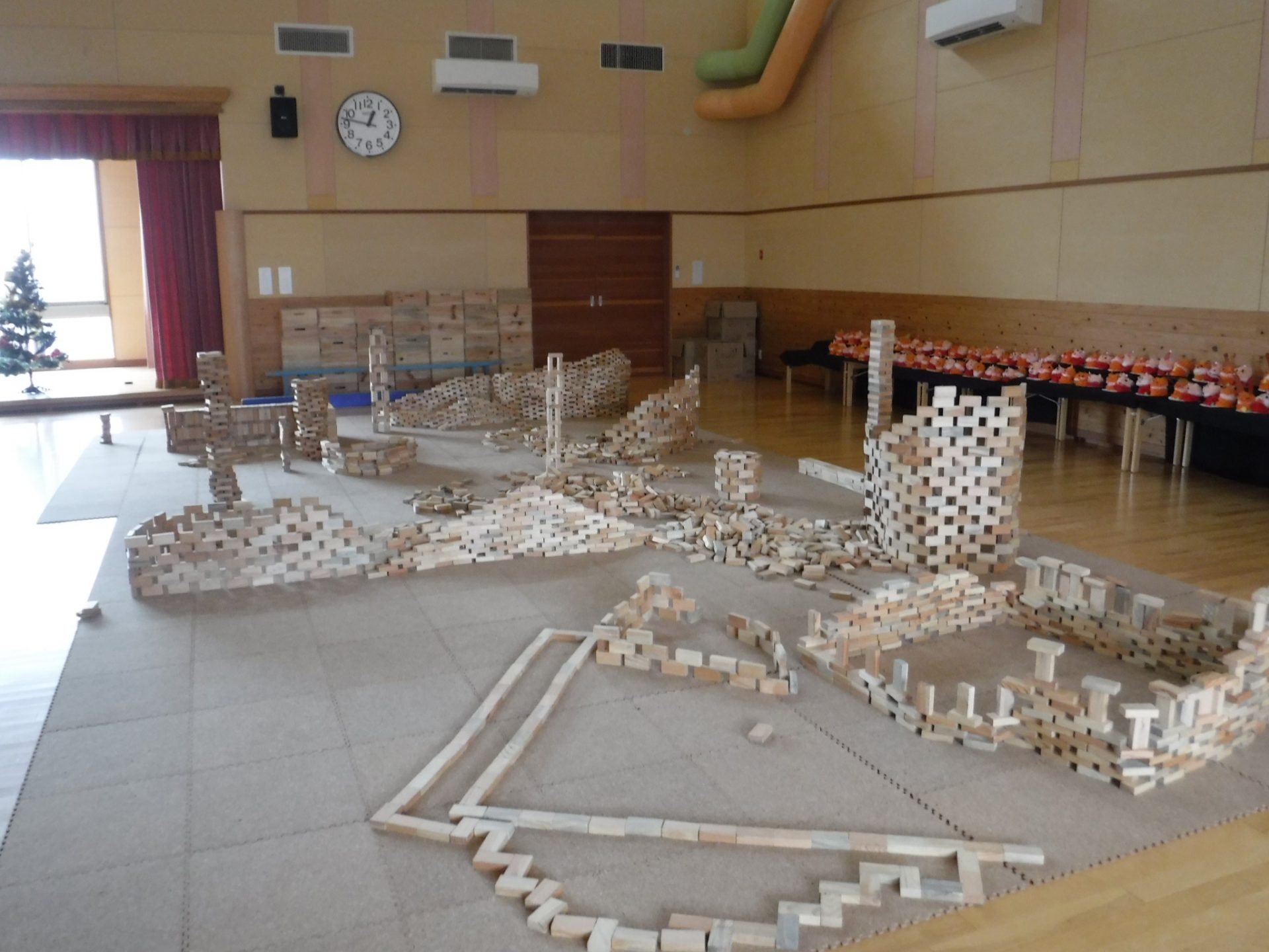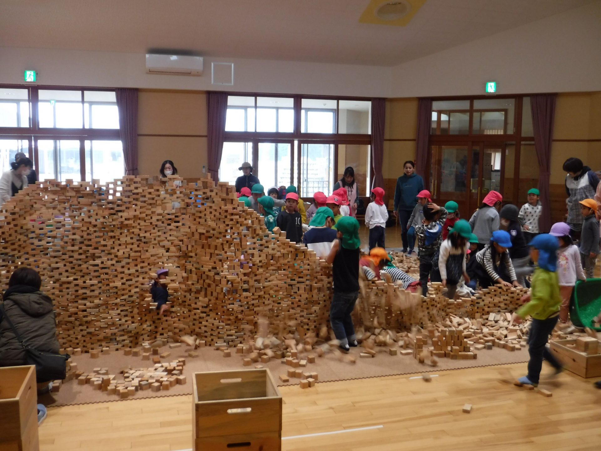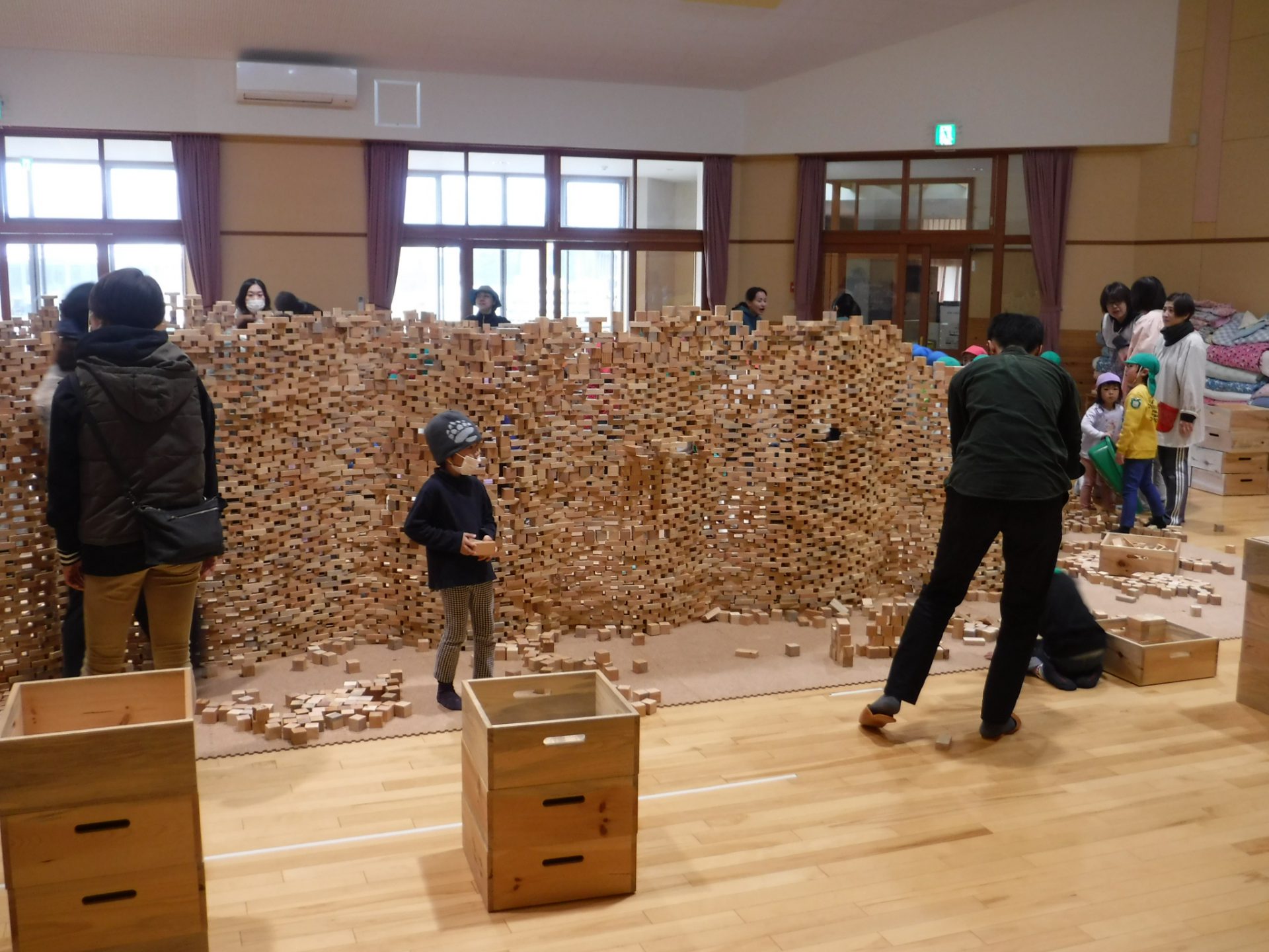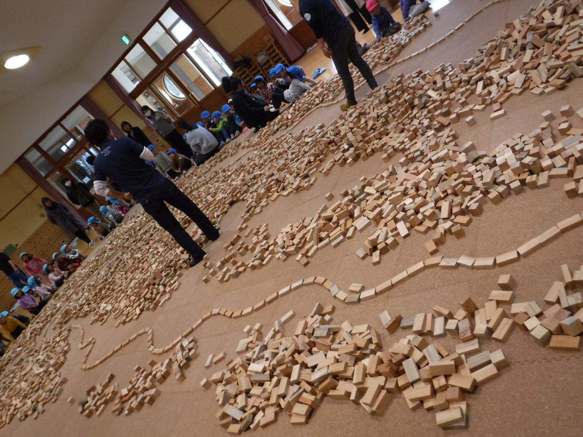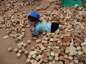 2万個のつみ木が運び込まれ子どもたちがやって来るのを待ってます。