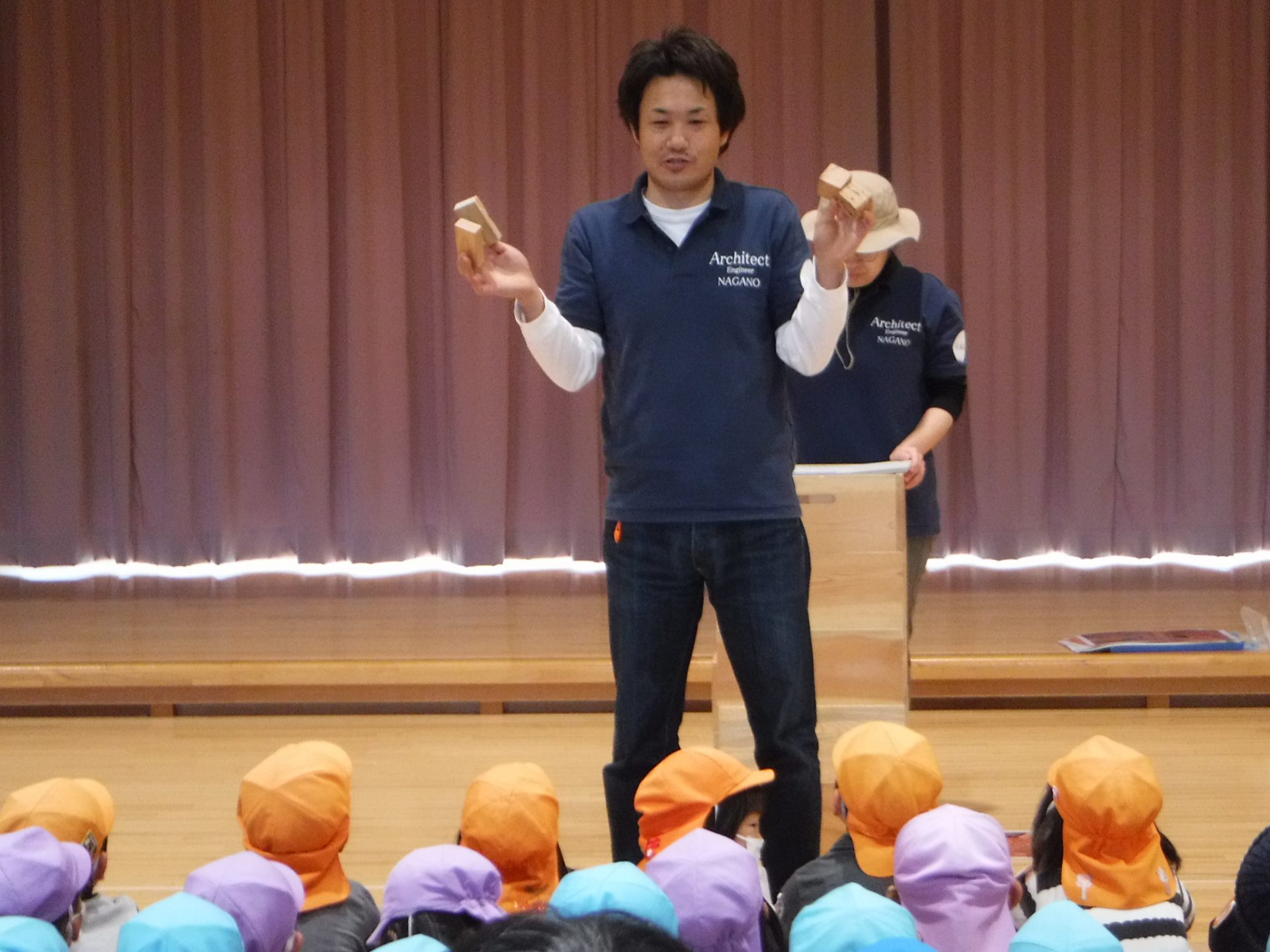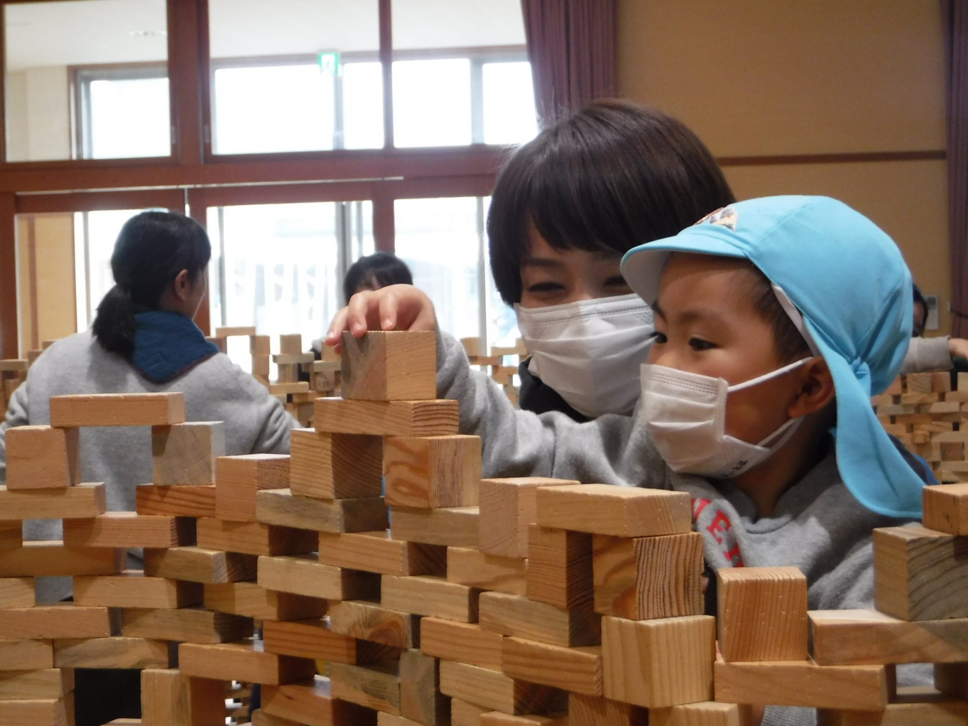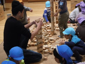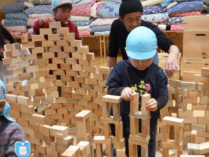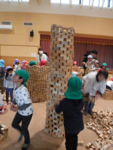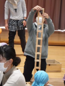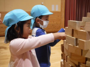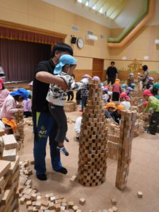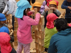 「次はお友達と見本のように積み上げてみな~」の声に
