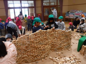 全員で大きな壁を作ることで力を合わせて作る楽しさや没頭して取り組むことができ、