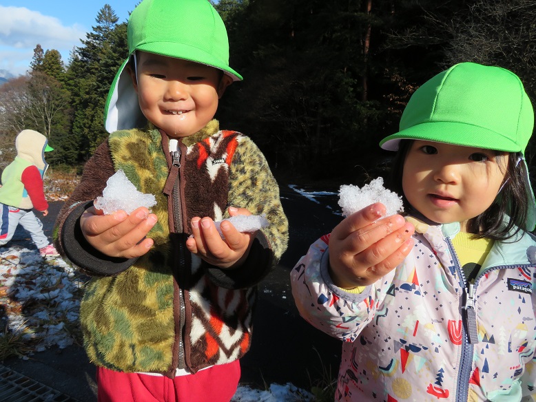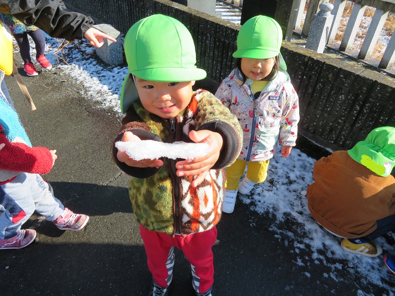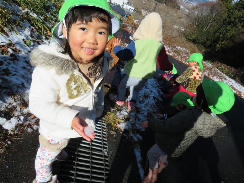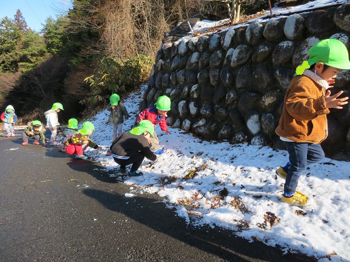 少量の雪でも、子ども達は自分なりの遊びを見つけ、楽しんでいる様子でした。