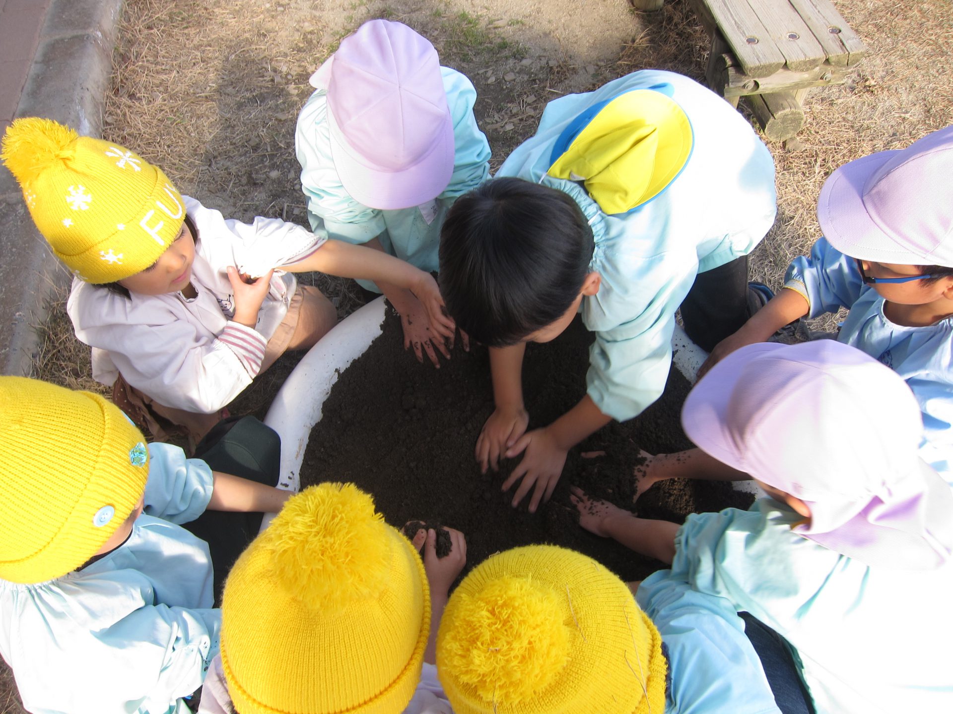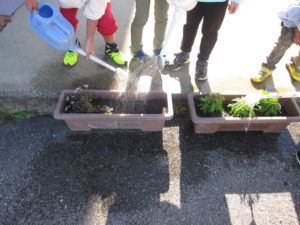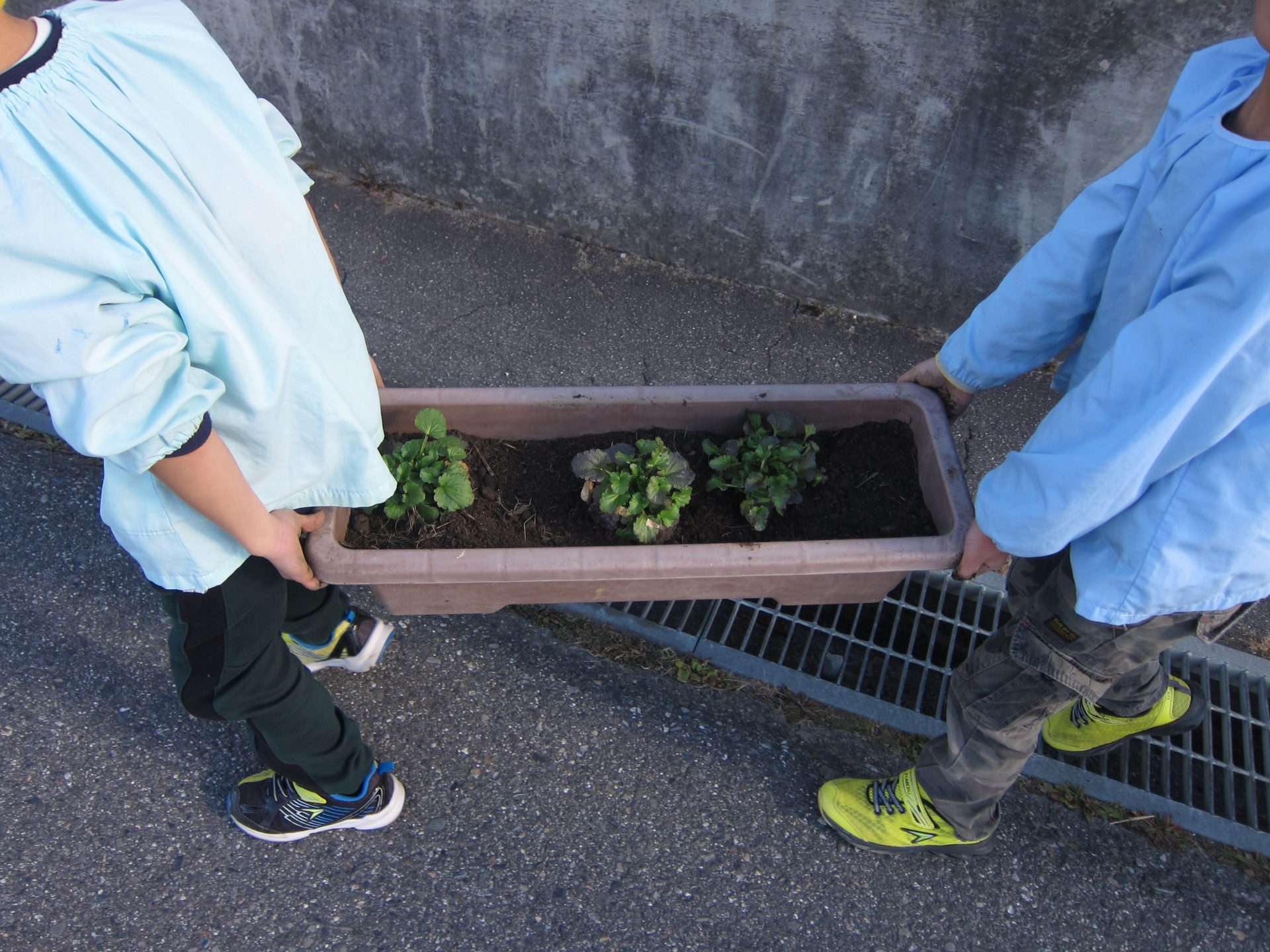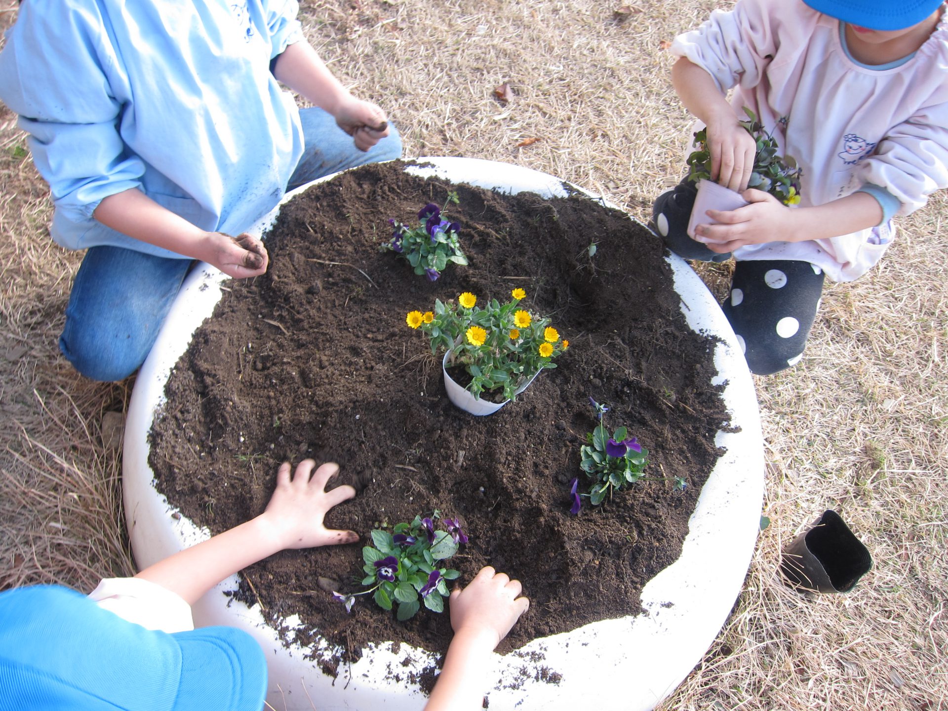 ー12月になり、寒さに強いパンジーの花を年長さんが植えました。