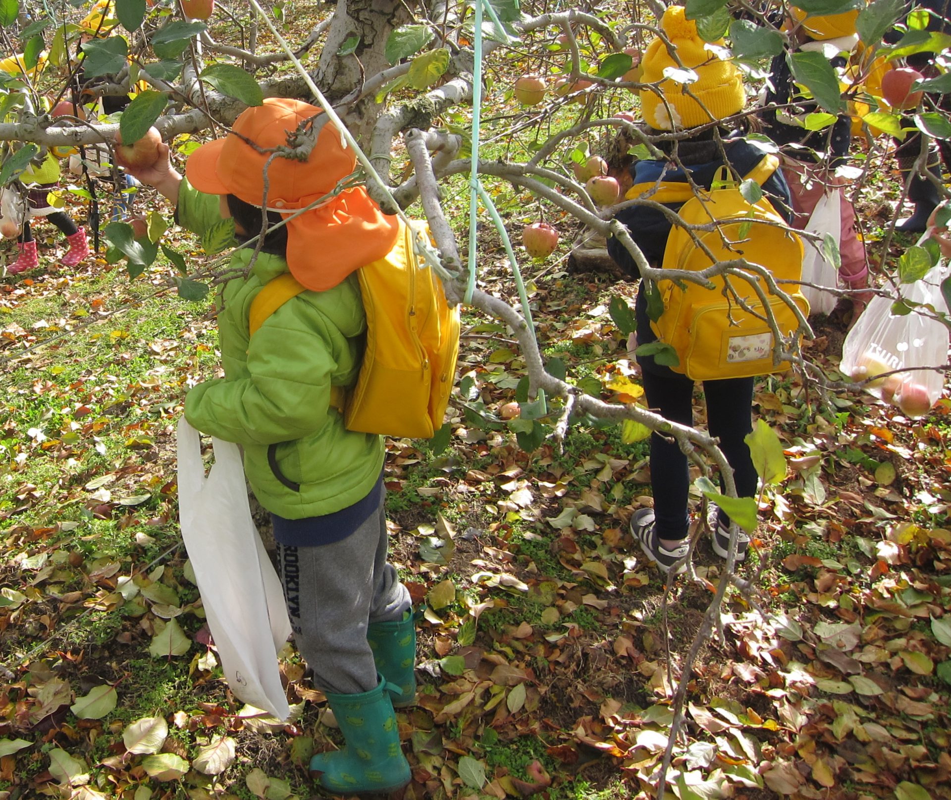 以上児は、地域の方のご厚意によりりんご狩りへ行かせていただきました。