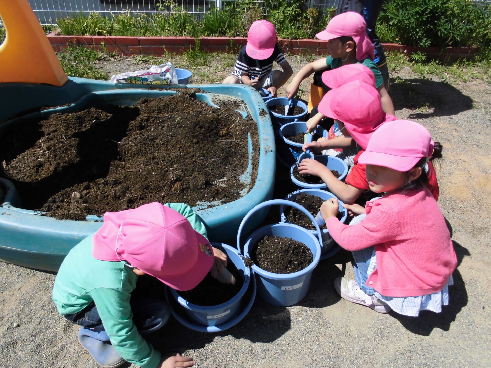 年長さんの土作りからスタート。作物は土が大事だからね。