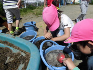 そこで、バケツや空きプールを使って稲を育てることにしました。