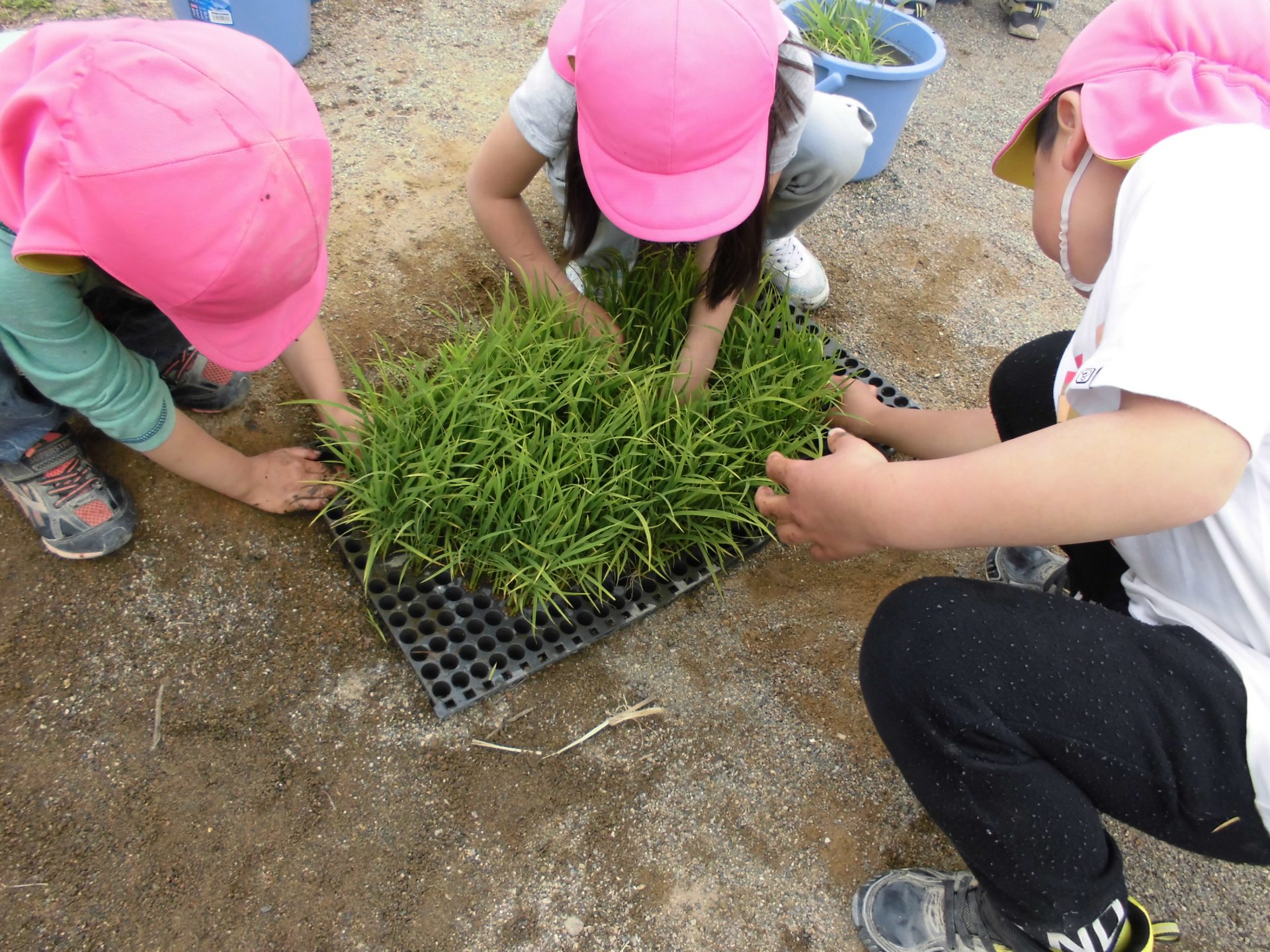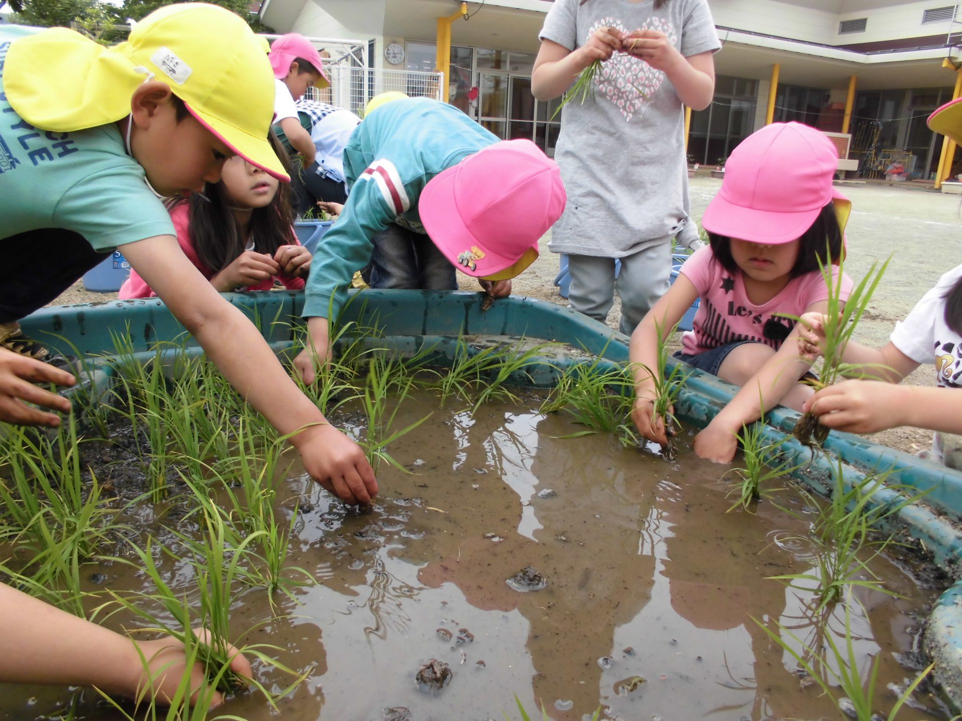 そこから、保育園でもお米を育ててみたいという思いへとつながらり田んぼ作りが始まりました。自園は、田んぼがありません。