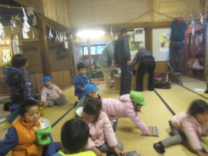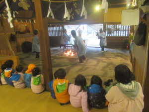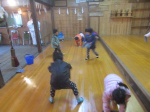 の掛け声に合わせて、年長が舞っていました。