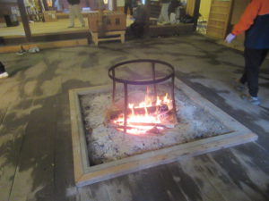 かまどの火が明々としていて幻想的です。