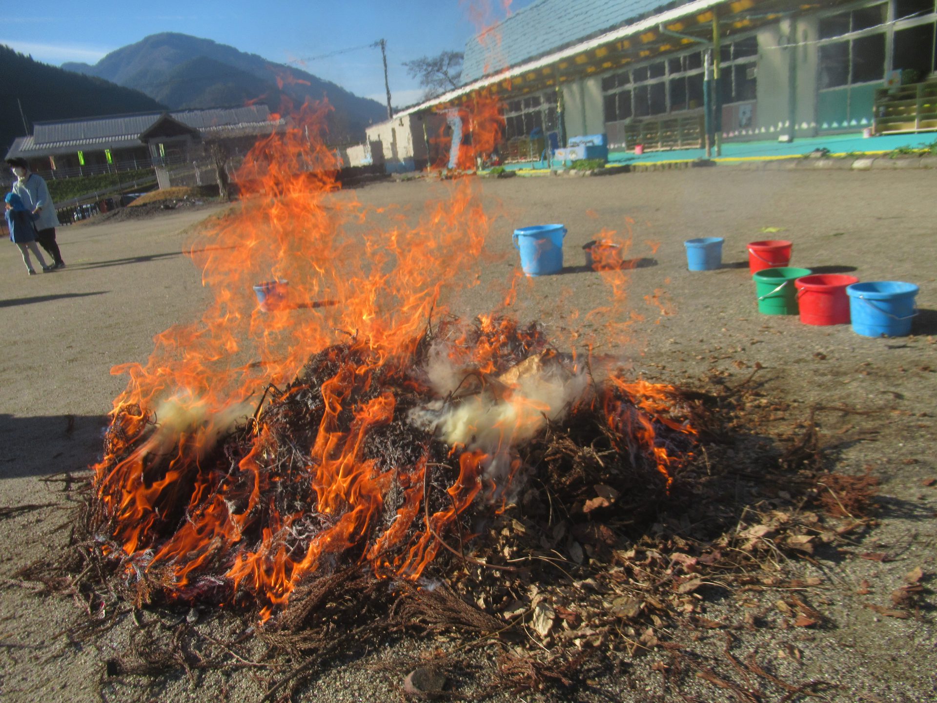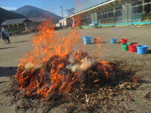 霜月祭が終わってから園庭で焼き芋をしたとき