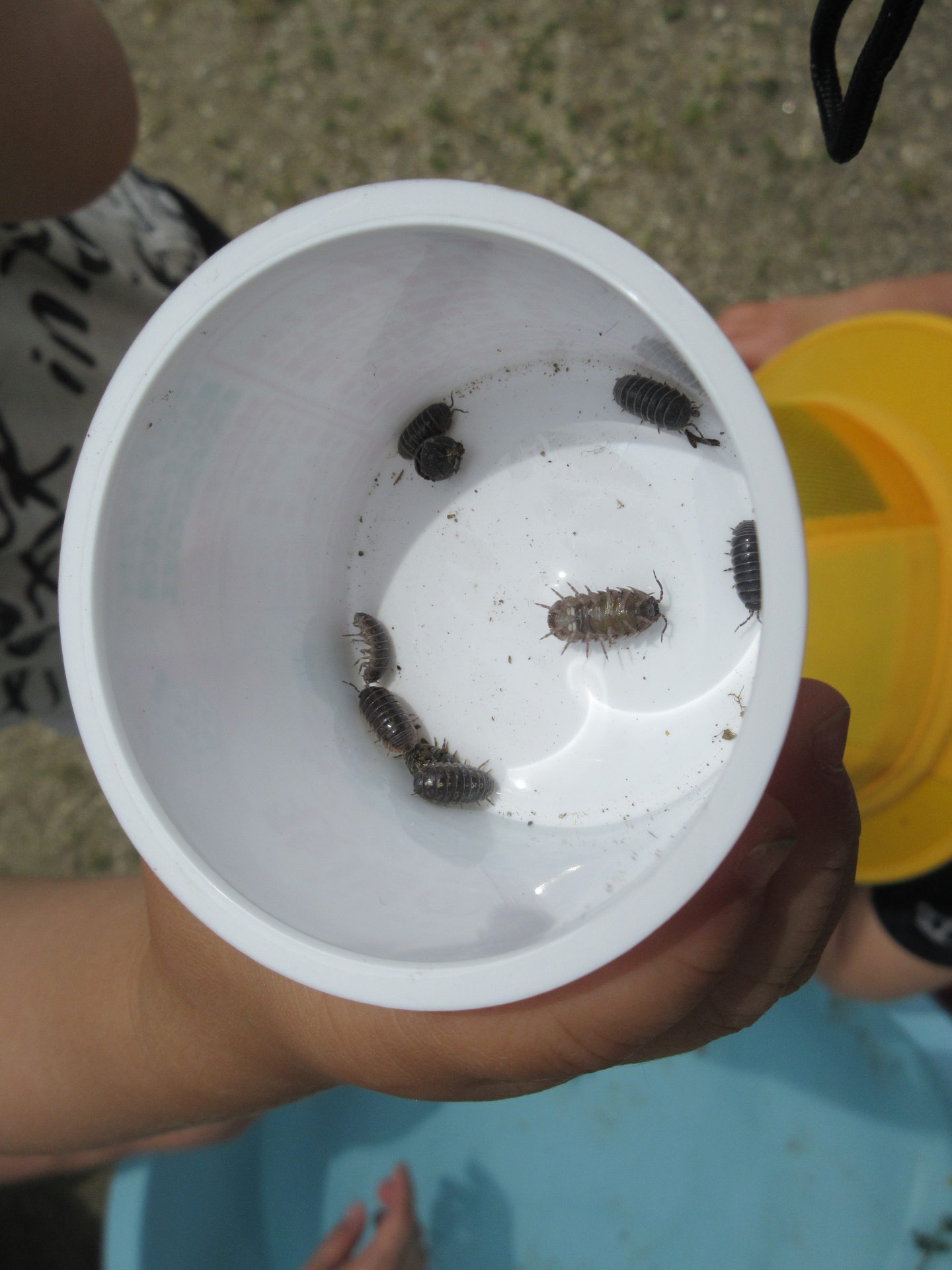 ↑ ネバーランドでカブトムシの幼虫探し ↑ 「見て!園庭でダンゴ虫捕まえたよ」