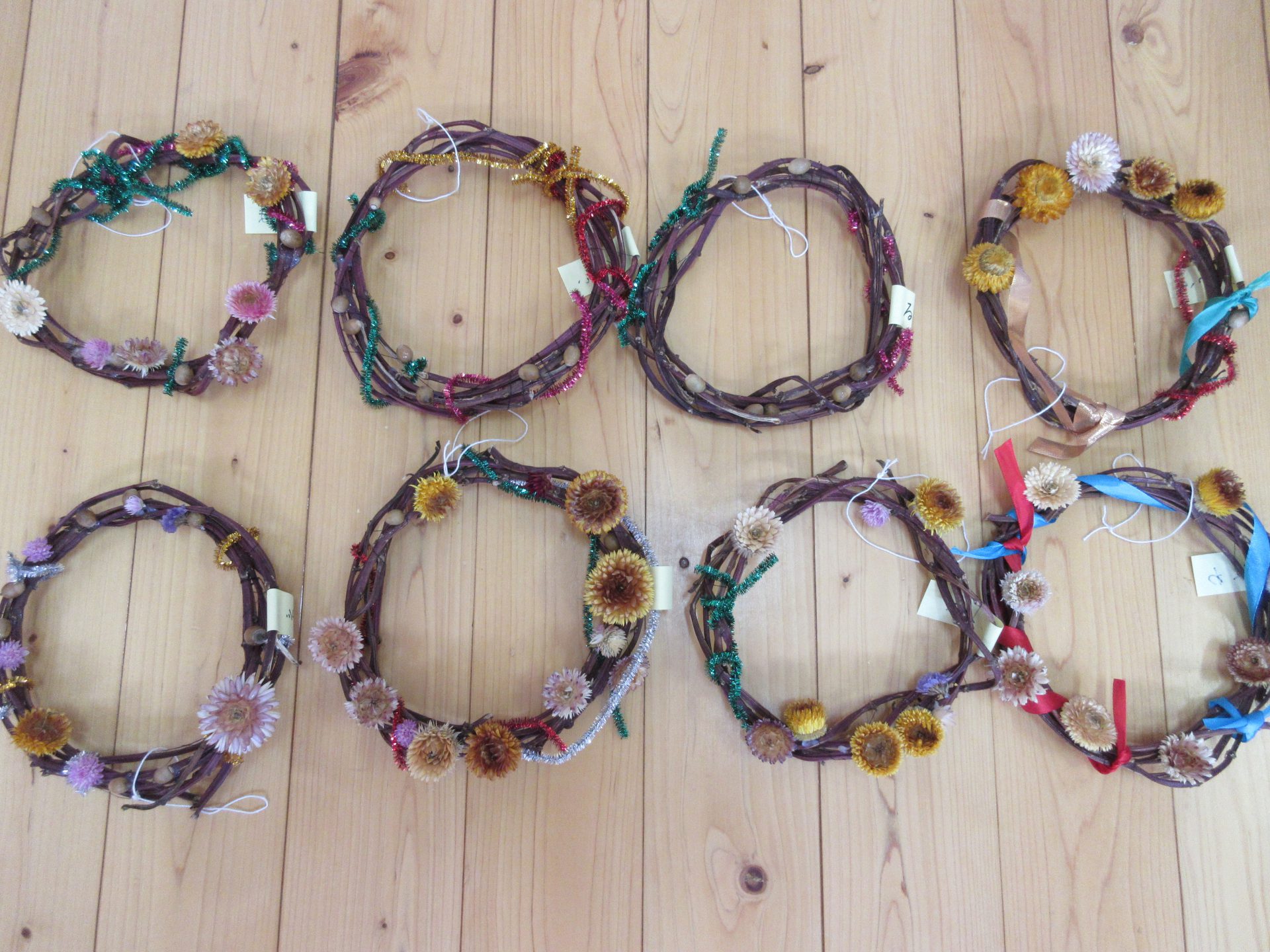 ↑ 「葉っぱの雨だぁ~!」 ↑ さつま芋のつるで作ったクリスマスリース