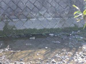途中の川にはカルガモがのんびりと日向ぼっこをしていました。