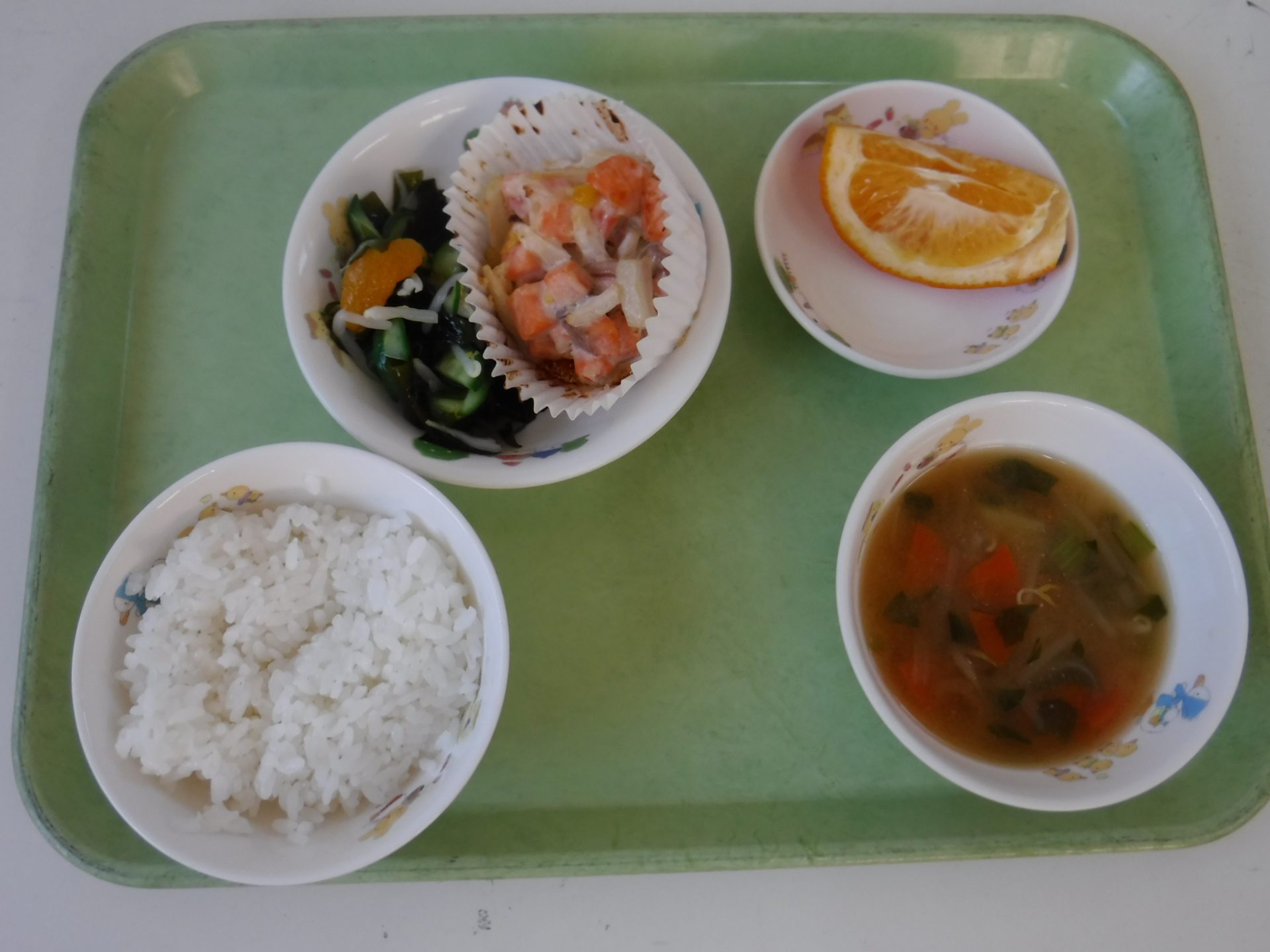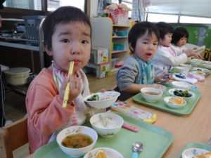 その日の給食には地元でとれた信州サーモンが出て、子どもたちも大満足でした。